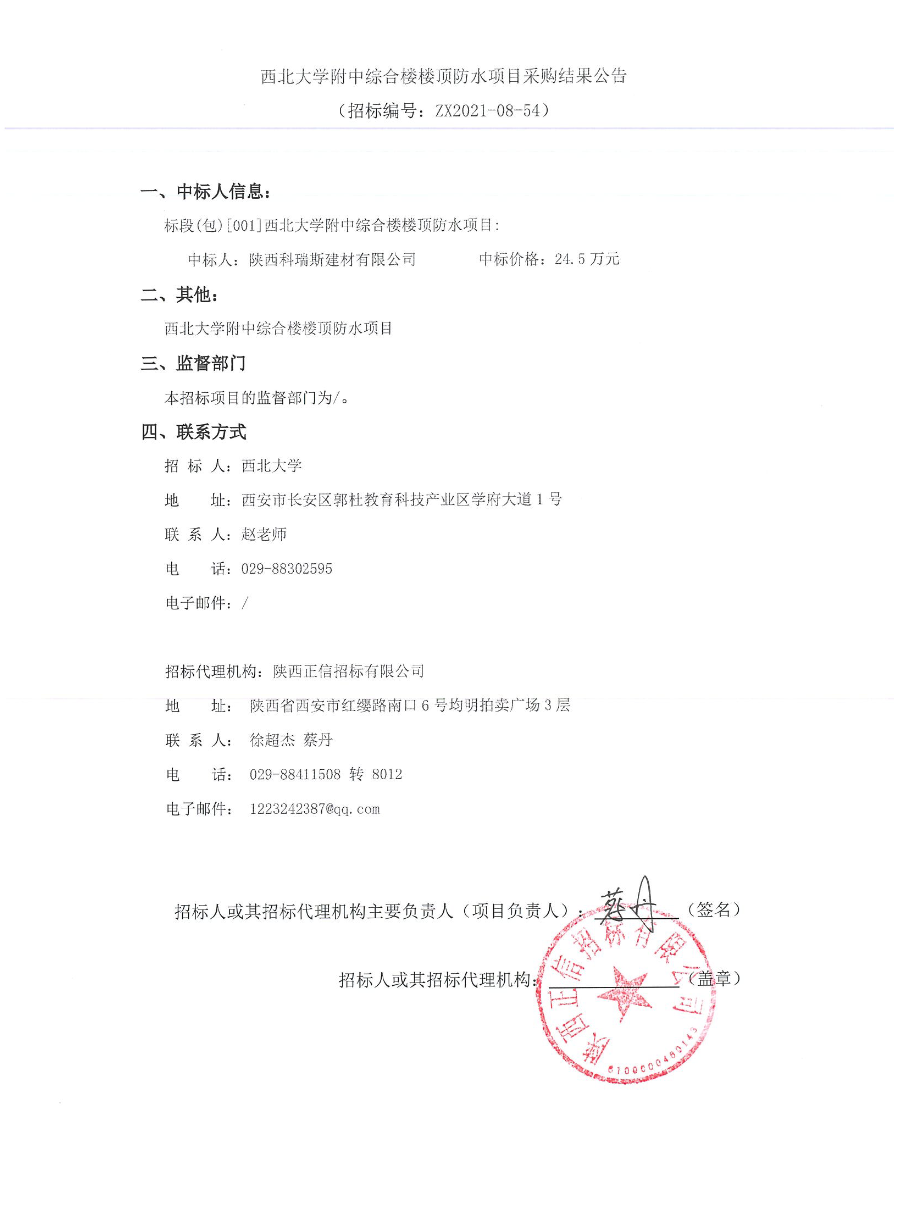 8868体育登录附中综合楼楼顶防水项目采购结果公告