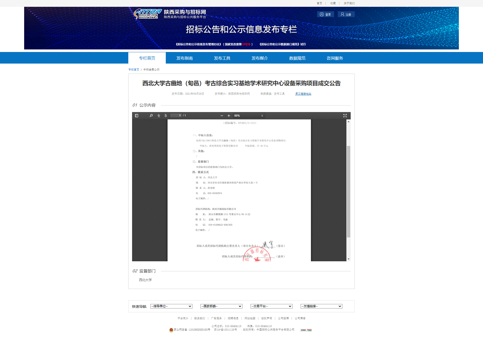 8868体育登录古豳地(旬邑)考古综合实习基地学术研究中心设备采购项目成交公告 作者: 编辑:采购与招标办公室 时间:2021-09-29 原公告地址:http://bulletin.sntba.com/resultBulletin/2021-09-29/348615.html