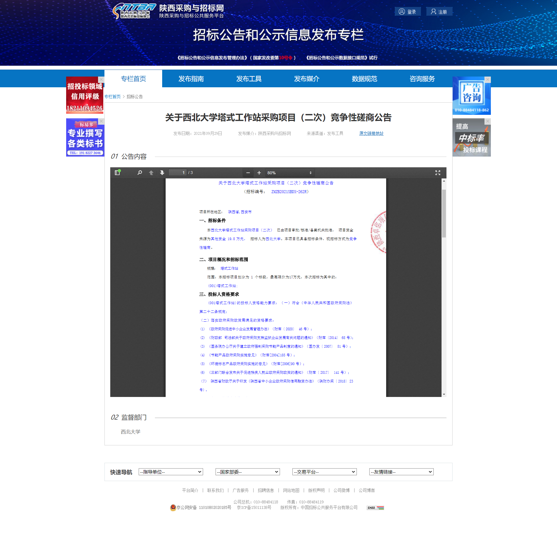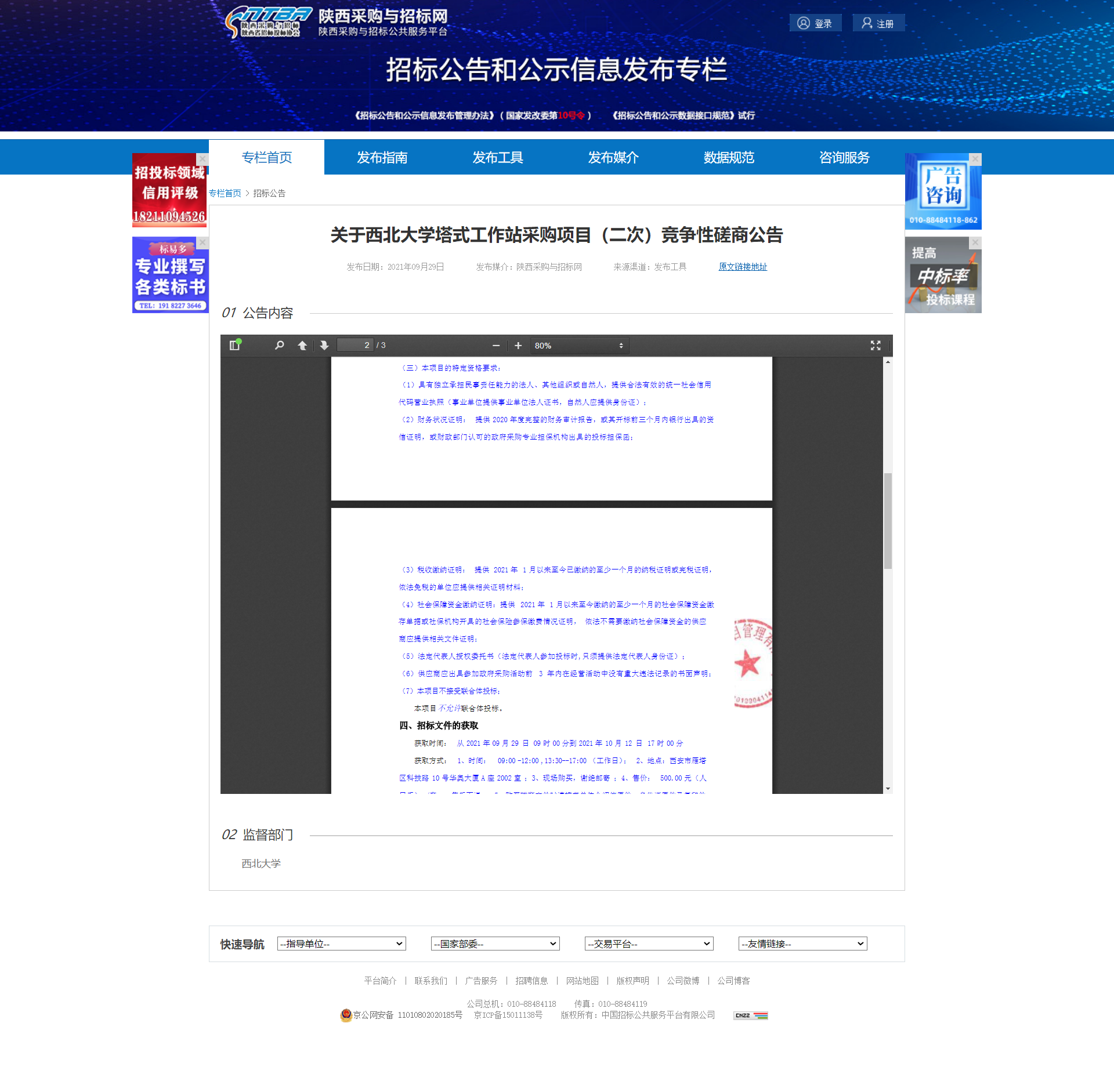 关于8868体育登录塔式工作站采购项目(二次)竞争性磋商公告 作者: 编辑:采购与招标办公室 时间:2021-09-29 原公告地址:http://bulletin.sntba.com/biddingBulletin/2021-09-29/348621.html