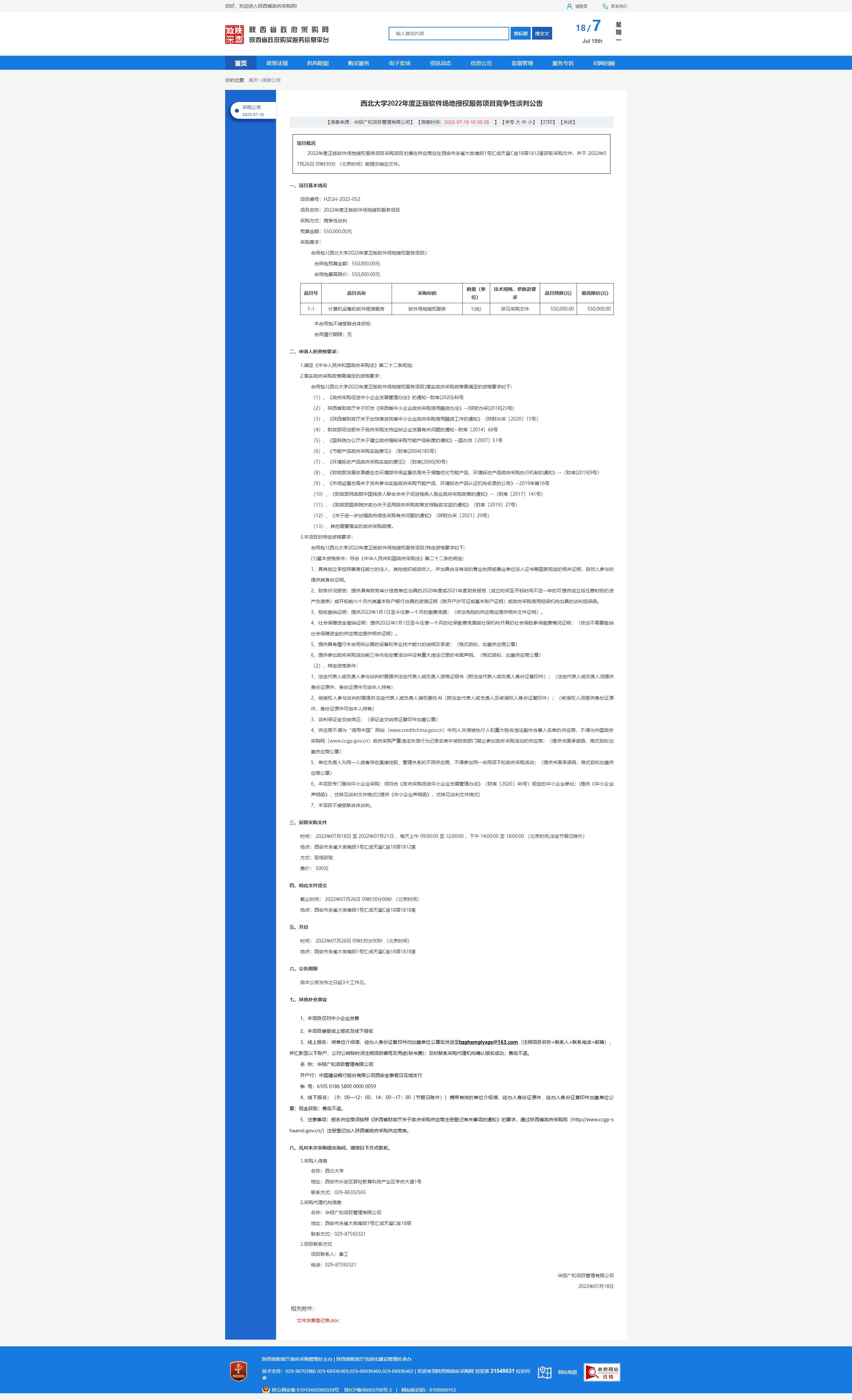 8868体育登录2022年度正版软件场地授权服务项目竞争性谈判公告