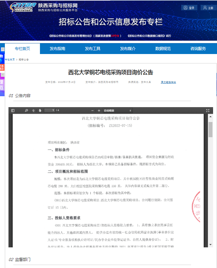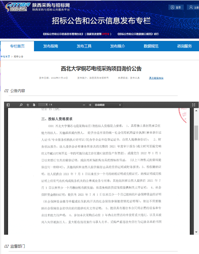 8868体育登录铜芯电缆采购项目询价公告 作者: 编辑:薛利娟 时间:2022-07-18 原公告链接:http://bulletin.sntba.com/biddingBulletin/2022-07-18/449060.html