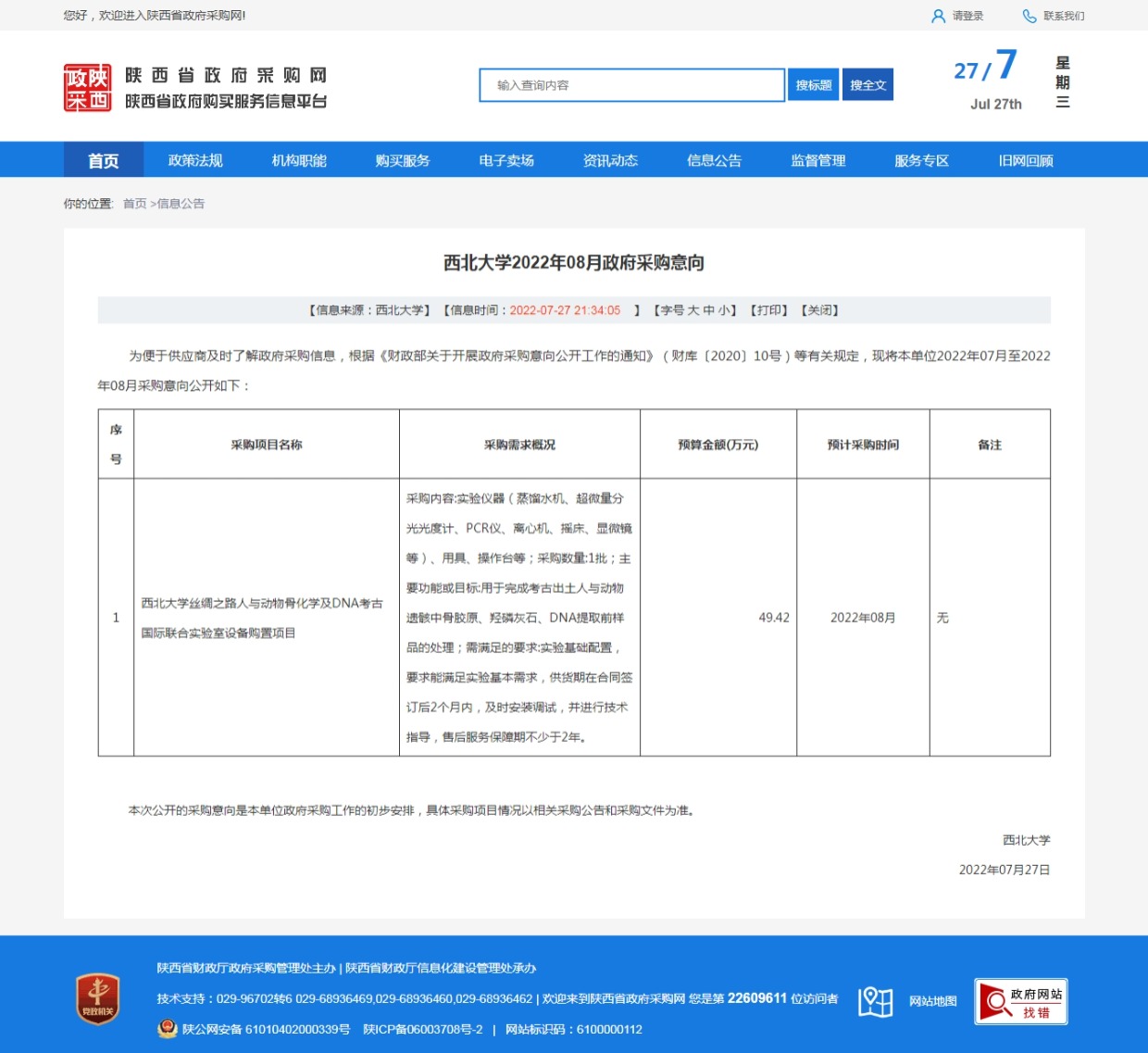 8868体育登录2022年08月政府采购意向 作者: 编辑:采购与招标办公室 时间:2022-07-27 原公告链接:http://www.ccgp-shaanxi.gov.cn/freecms/site/shaanxi/ggxx/info/2022/8a69c983823e8d3701823fa8fcc44fa0.html?noticeType=59¬iceId=2deaf510-0db1-11ed-9a8e-08c0eb20c666