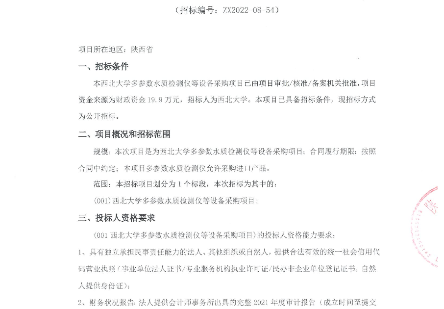 8868体育登录多参数水质检测仪等设备采购项目公开招标公告 作者: 编辑:采购与招标办公室 时间:2022-11-03 原公告链接:http://bulletin.sntba.com/biddingBulletin/2022-11-03/494214.html
