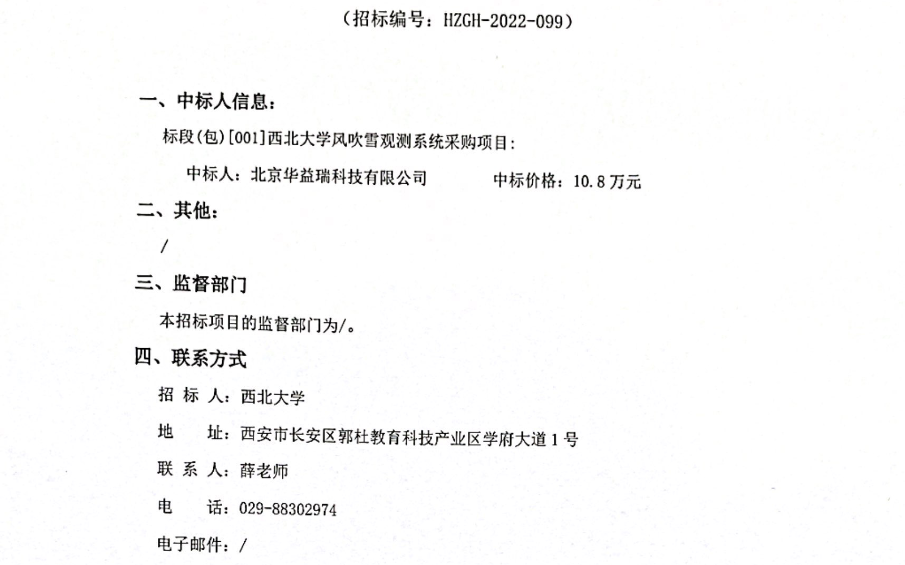 8868体育登录风吹雪观测系统采购项目成交结果公示 作者: 编辑:采购与招标办公室 时间:2022-11-18 原公告链接:http://bulletin.sntba.com/resultBulletin/2022-11-18/500439.html