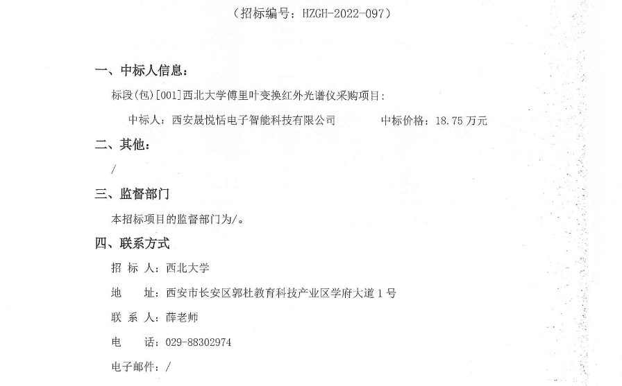 8868体育登录傅里叶变换红外光谱仪采购项目中标结果公示 作者: 编辑:采购与招标办公室 时间:2022-11-23 原公告链接:http://bulletin.sntba.com/resultBulletin/2022-11-23/502120.html