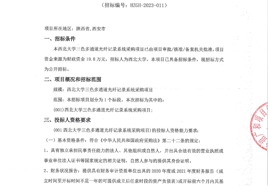 8868体育登录三色多通道光纤记录系统采购项目招标公告 作者: 编辑:采购与招标办公室 时间:2023-03-22 原公告链接:http://bulletin.sntba.com/biddingBulletin/2023-03-21/538285.html