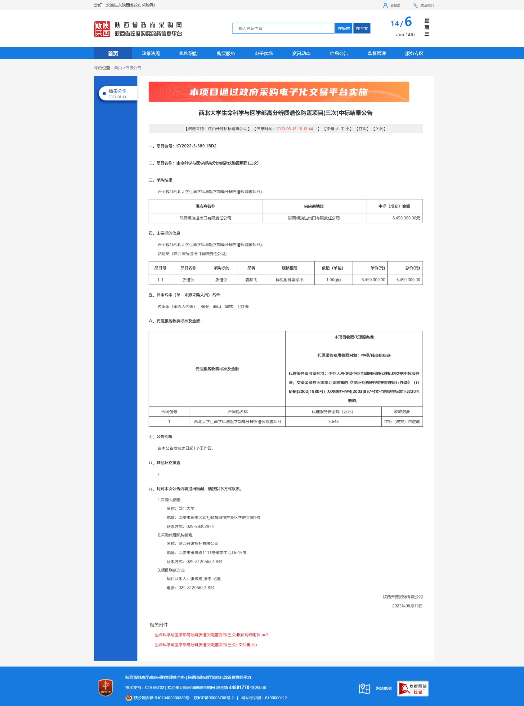 8868体育登录生命科学与医学部高分辨质谱仪购置项目(三次)中标结果公告 作者: 编辑:采购与招标办公室 时间:2023-06-14 原公告链接:http://www.ccgp-shaanxi.gov.cn/freecms/site/shaanxi/ggxx/info/2023/8a69c931884486120188b42f90a63f97.html?noticeType=001025¬iceId=bce12c69-09d4-11ee-9a8e-08c0eb20c666