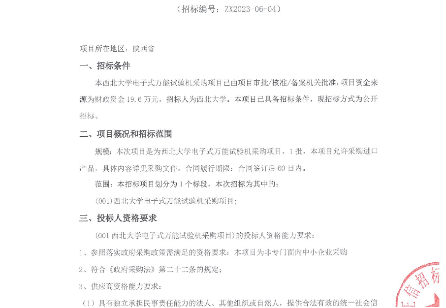 8868体育登录电子式万能试验机采购项目招标公告 作者: 编辑:采购与招标办公室 时间:2023-06-16 原公告链接:http://bulletin.sntba.com/biddingBulletin/2023-06-16/573127.html
