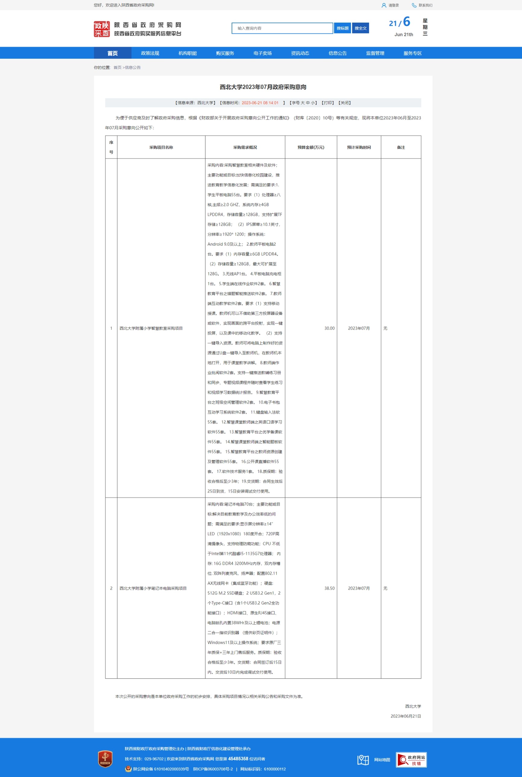 8868体育登录2023年07月政府采购意向 作者: 编辑:采购与招标办公室 时间:2023-06-21 原公告链接:http://www.ccgp-shaanxi.gov.cn/freecms/site/shaanxi/ggxx/info/2023/8a69c41d88d6a1ff0188db49b6ae7e46.html?noticeType=59¬iceId=9959f749-0fc9-11ee-9a8e-08c0eb20c666