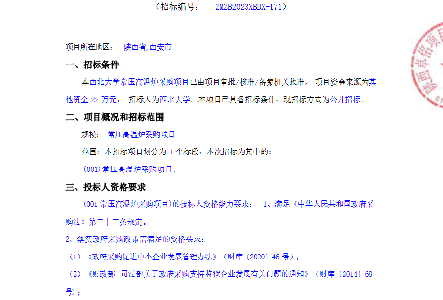 8868体育登录常压高温炉采购项目公开招标公告 作者: 编辑:采购与招标办公室 时间:2023-07-11 原公告链接:http://bulletin.sntba.com/biddingBulletin/2023-07-10/582742.html