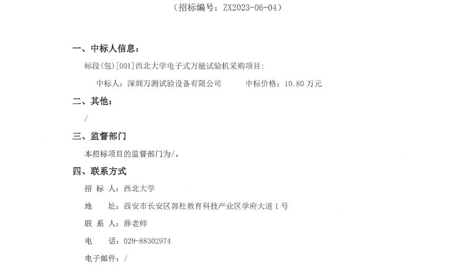 8868体育登录电子式万能试验机采购项目采购结果公告 作者: 编辑:采购与招标办公室 时间:2023-07-11 原公告链接:http://bulletin.sntba.com/resultBulletin/2023-07-11/583301.html