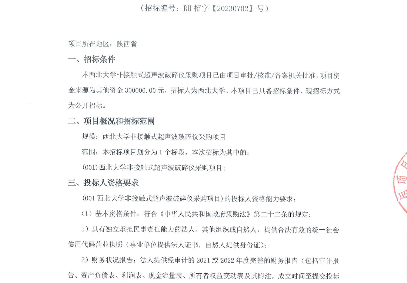 8868体育登录非接触式超声波破碎仪采购项目招标公告 作者: 编辑:薛利娟 时间:2023-08-06 原公告链接:http://bulletin.sntba.com/biddingBulletin/2023-08-04/603235.html
