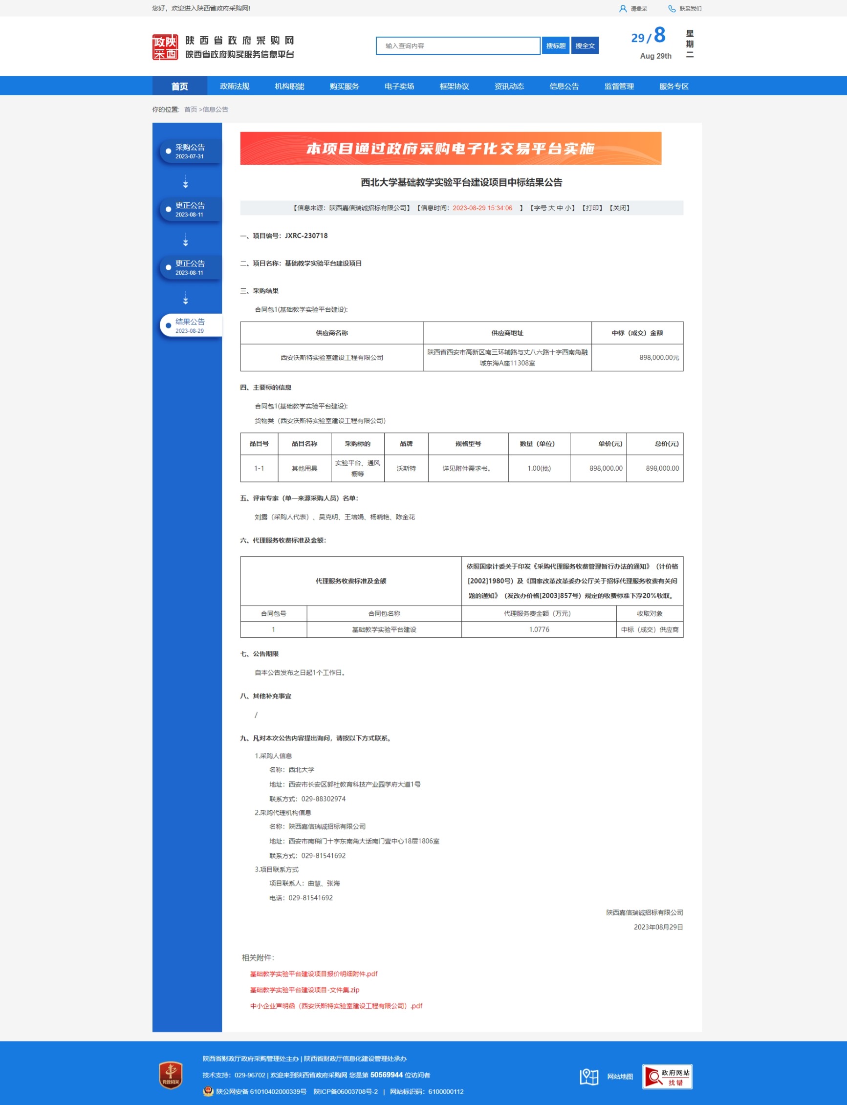 8868体育登录基础教学实验平台建设项目中标结果公告 作者: 编辑:采购与招标办公室 时间:2023-08-29 原公告链接:http://www.ccgp-shaanxi.gov.cn/freecms/site/shaanxi/ggxx/info/2023/8a69c4438a23269f018a3ff298226eae.html?noticeType=001021¬iceId=a20d4fa8-463f-11ee-9a8e-08c0eb20c666