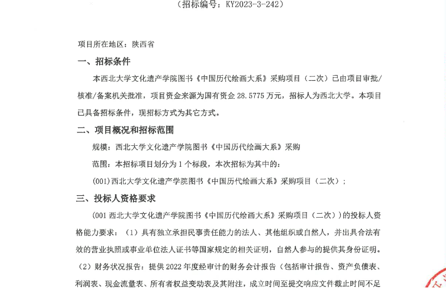 8868体育登录文化遗产学院图书《中国历代绘画大系》采购项目(二次)竞争性谈判公告 作者: 编辑:采购与招标办公室 时间:2023-09-22 原公告链接:http://bulletin.sntba.com/biddingBulletin/2023-09-21/678342.html