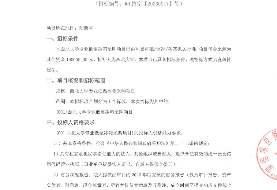 8868体育登录专业低温冰箱采购项目竞争性磋商公告 作者: 编辑:采购与招标办公室 时间:2023-09-22 原公告链接:http://bulletin.sntba.com/biddingBulletin/2023-09-22/680755.html