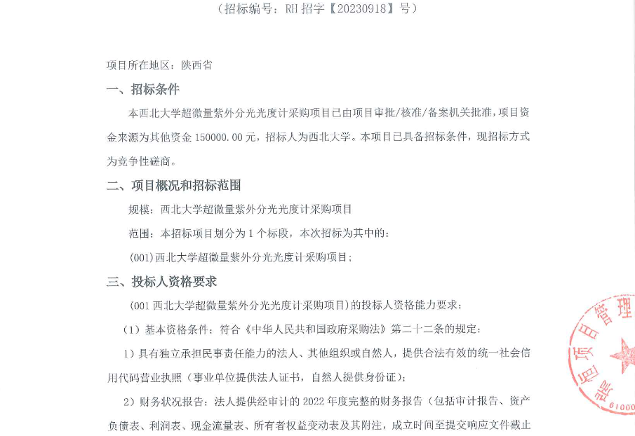 8868体育登录超微量紫外分光光度计采购项目竞争性磋商公告 作者: 编辑:采购与招标办公室 时间:2023-09-22 原公告链接:http://bulletin.sntba.com/biddingBulletin/2023-09-22/680812.html
