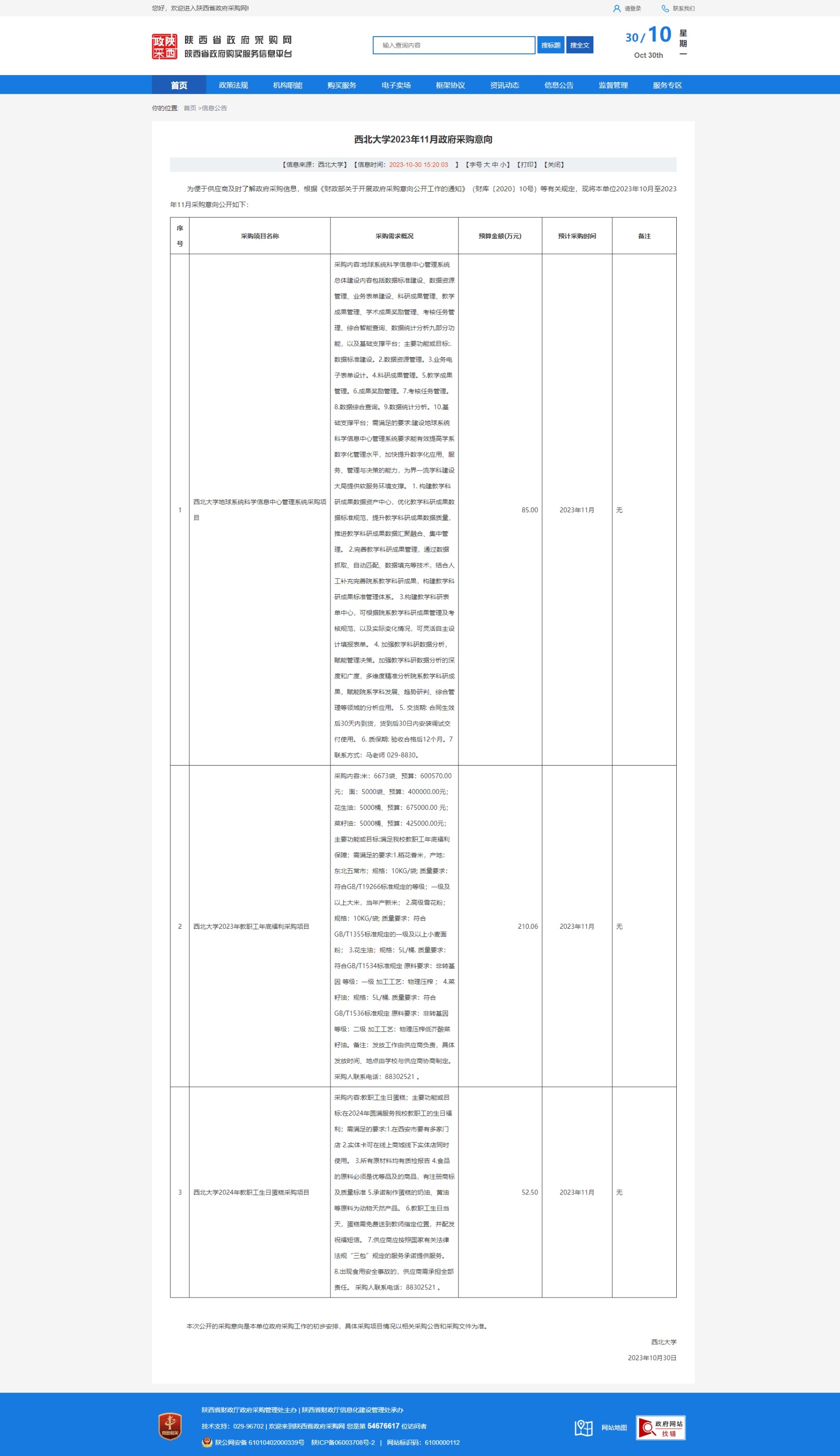 8868体育登录2023年11月政府采购意向 作者: 编辑:采购与招标办公室 时间:2023-10-30 原公告链接:http://www.ccgp-shaanxi.gov.cn/freecms/site/shaanxi/ggxx/info/2023/8a69c1288b698e63018b6ad75f505d94.html?noticeType=59¬iceId=0d61a29b-76f6-11ee-9a8e-08c0eb20c666