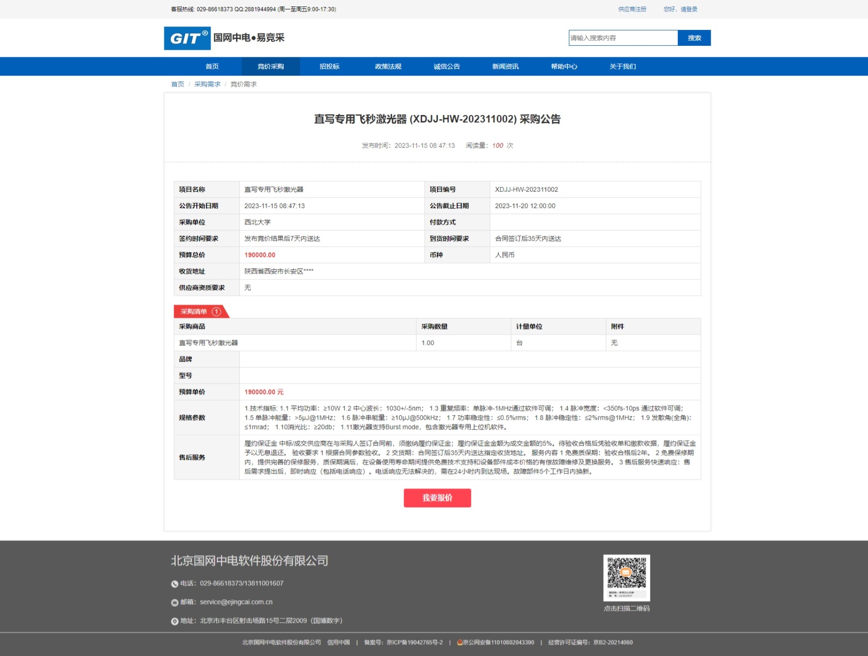 8868体育登录直写专用飞秒激光器采购公告 作者: 编辑:采购与招标办公室 时间:2023-11-15 原公告链接:https://www.ejingcai.com.cn/site/bidding/detail/6692