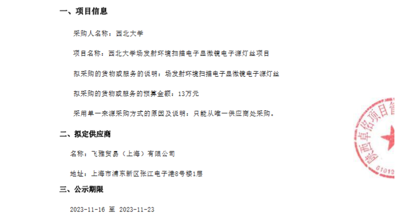 8868体育登录场发射环境扫描电子显微镜电子源灯丝项目单一来源采购征求意见公示 作者: 编辑:采购与招标办公室 时间:2023-11-16 原公告链接:http://www.sntba.com/website/gg_show.aspx?id=260702