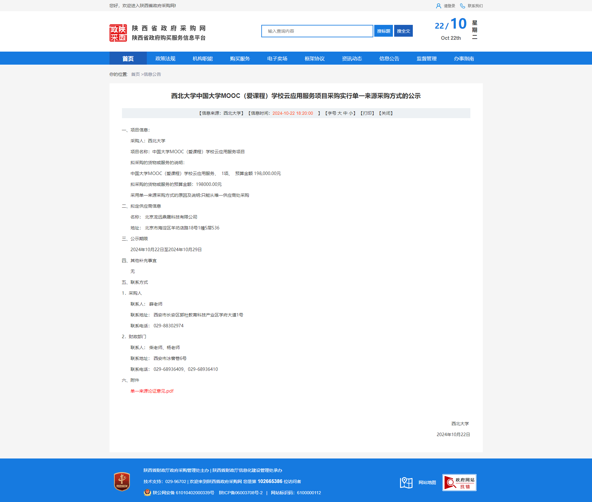 8868体育登录中国大学MOOC(爱课程)学校云应用服务项目采购实行单一来源采购方式的公示