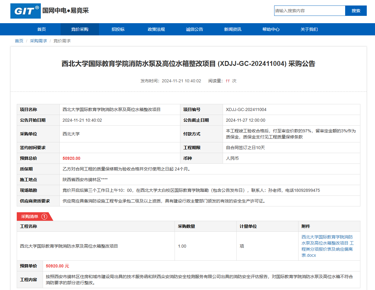 8868体育登录国际教育学院消防水泵及高位水箱整改项目(XDJJ-GC-202411004)竞价采购公告 作者:采购与招标办公室 编辑: 时间:2024-11-21 原公告链接:https://www.ejingcai.com.cn/site/bidding/detail/15178