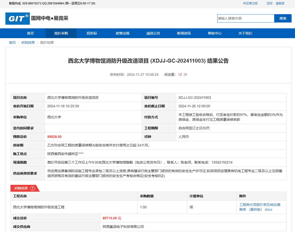 8868体育登录博物馆消防升级改造项目(XDJJ-GC-202411003)竞价结果公告 作者:采购与招标办公室 编辑: 时间:2024-11-27 原公告链接:https://www.ejingcai.com.cn/site/bidding/detail/15427
