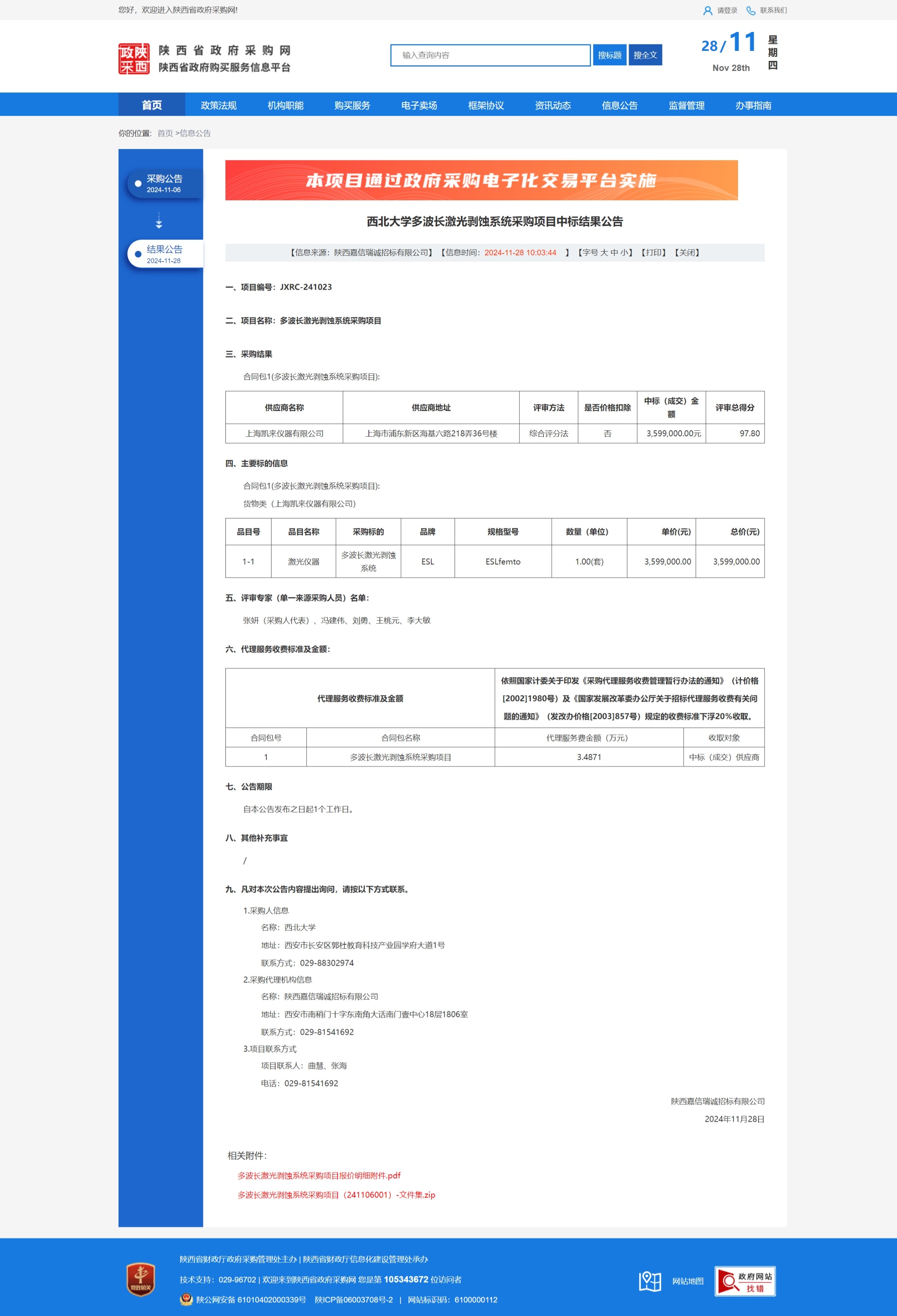 8868体育登录多波长激光剥蚀系统采购项目中标结果公告 作者: 编辑:薛利娟 时间:2024-11-28 原公告链接:https://www.ccgp-shaanxi.gov.cn/freecms/site/shaanxi/ggxx/info/2024/8a69c95d921859f00193707d429e2b76.html?noticeType=001021¬iceId=97341842-ad2e-11ef-8063-08c0eb20c666