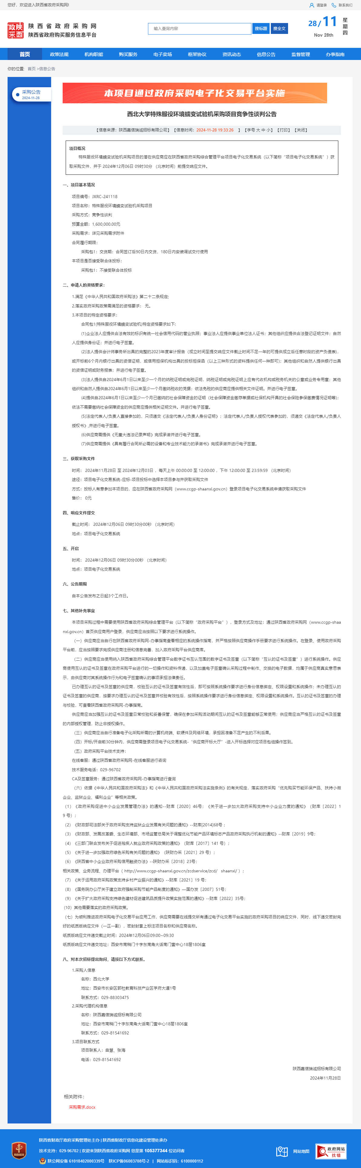8868体育登录特殊服役环境蠕变试验机采购项目竞争性谈判公告 作者:采购与招标办公室 编辑: 时间:2024-11-28 原公告链接:https://www.ccgp-shaanxi.gov.cn/freecms/site/shaanxi/ggxx/info/2024/8a69c251921857370193727b4a7b65d2.html?noticeType=001013¬iceId=2da54cc6-ad7e-11ef-8063-08c0eb20c666