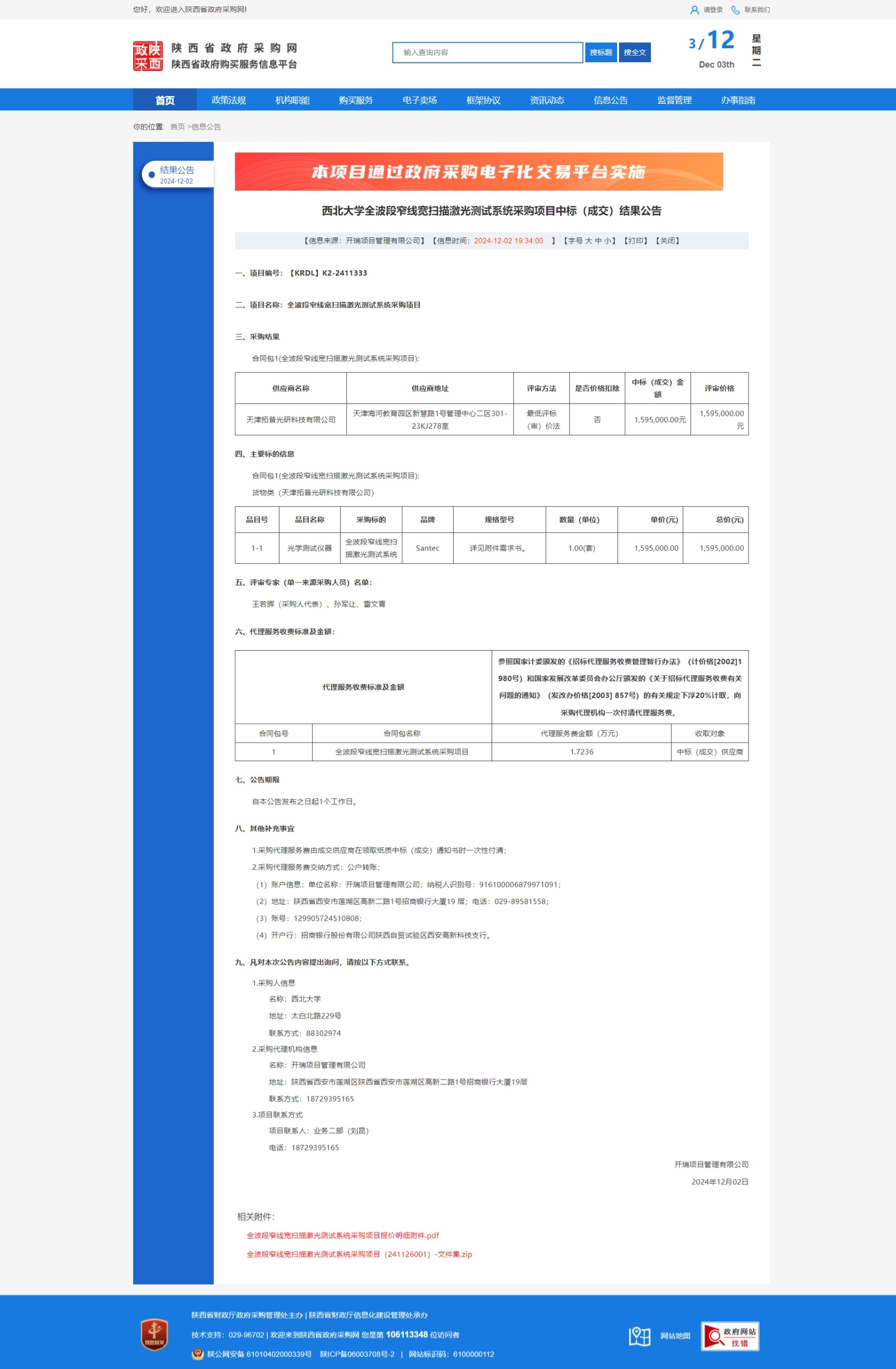 8868体育登录全波段窄线宽扫描激光测试系统采购项目中标(成交)结果公告 作者: 编辑:薛利娟 时间:2024-12-03 原公告链接:https://www.ccgp-shaanxi.gov.cn/freecms/site/shaanxi/ggxx/info/2024/8a69c25192185737019387129cff6e5b.html?noticeType=001025¬iceId=ed669128-b0a2-11ef-8063-08c0eb20c666
