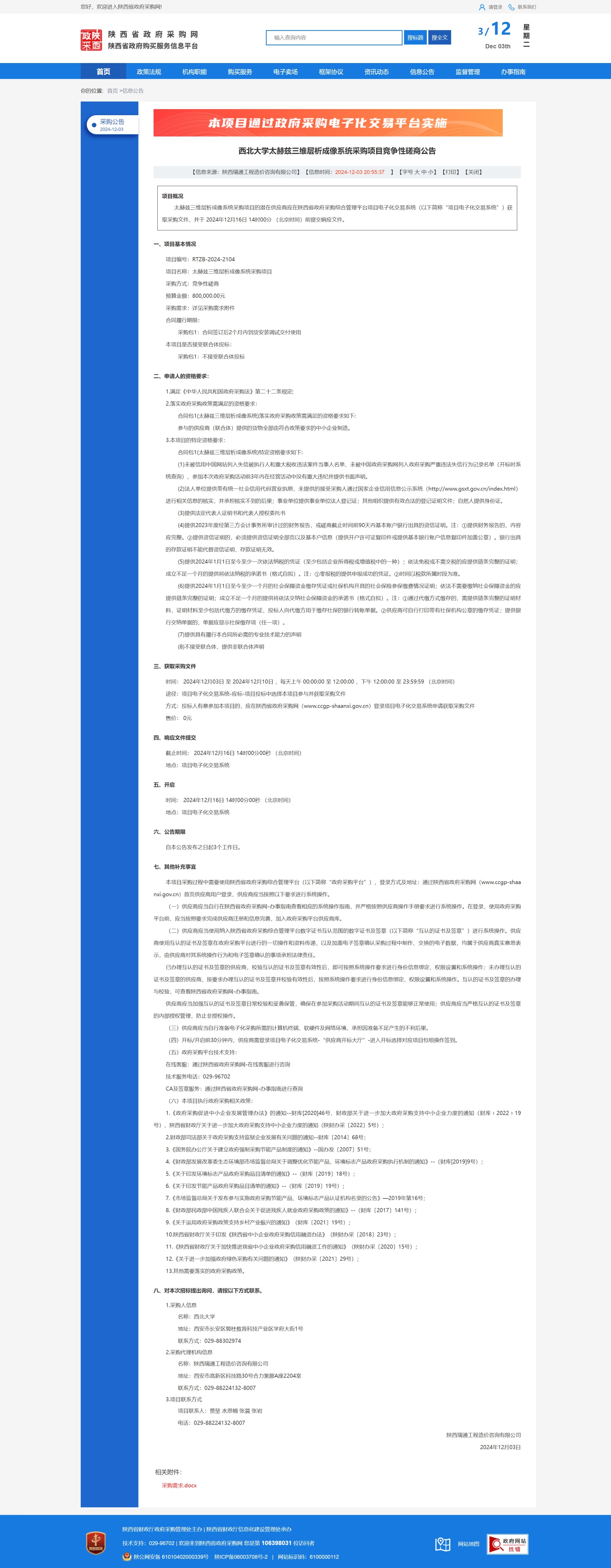 8868体育登录太赫兹三维层析成像系统采购项目竞争性磋商公告 作者: 编辑:薛利娟 时间:2024-12-03 原公告链接:https://www.ccgp-shaanxi.gov.cn/freecms/site/shaanxi/ggxx/info/2024/8a69c95d921859f001938c91d623402a.html?noticeType=001016¬iceId=7f0f6e3e-b177-11ef-8063-08c0eb20c666