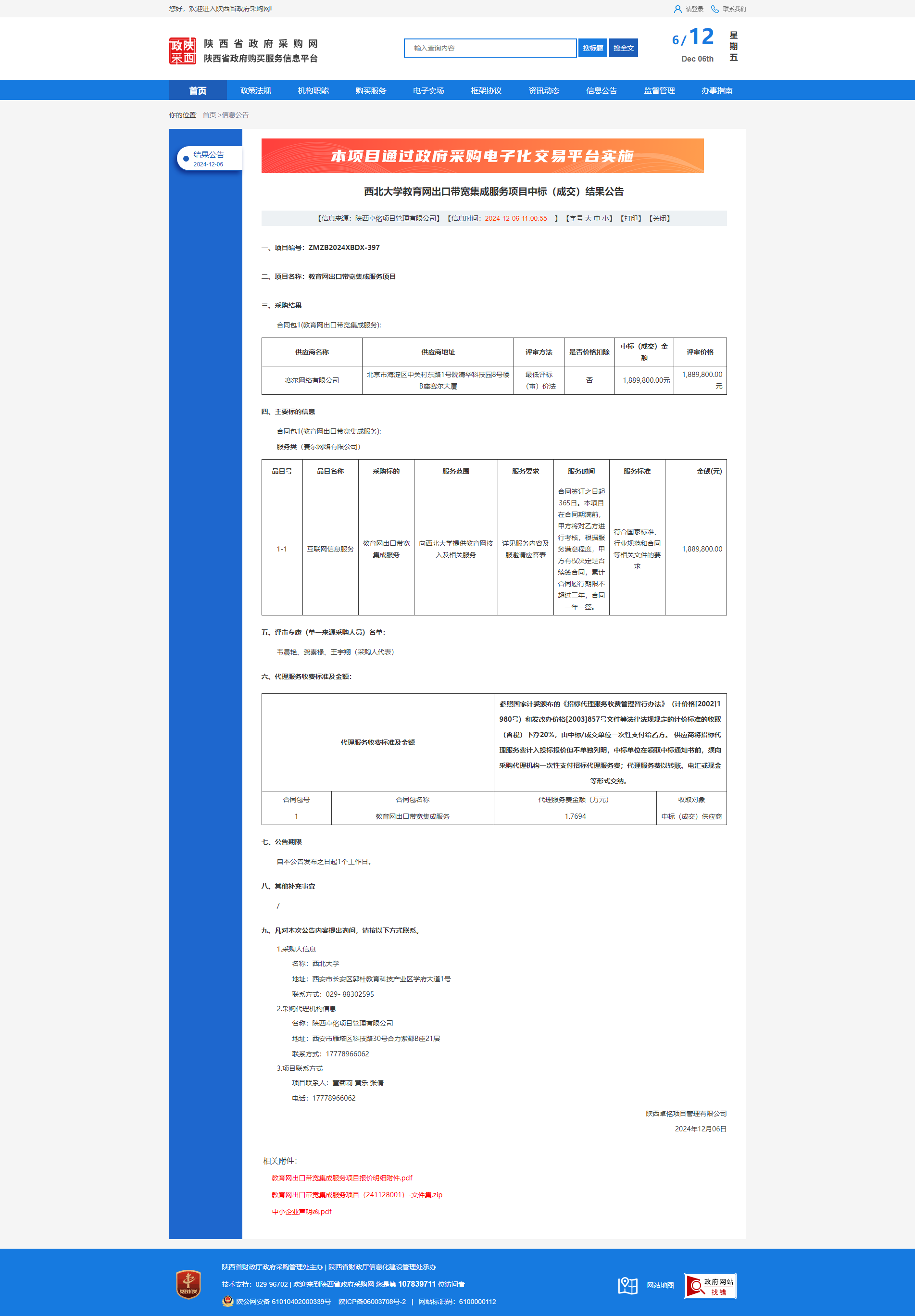 8868体育登录教育网出口带宽集成服务项目中标(成交)结果公告