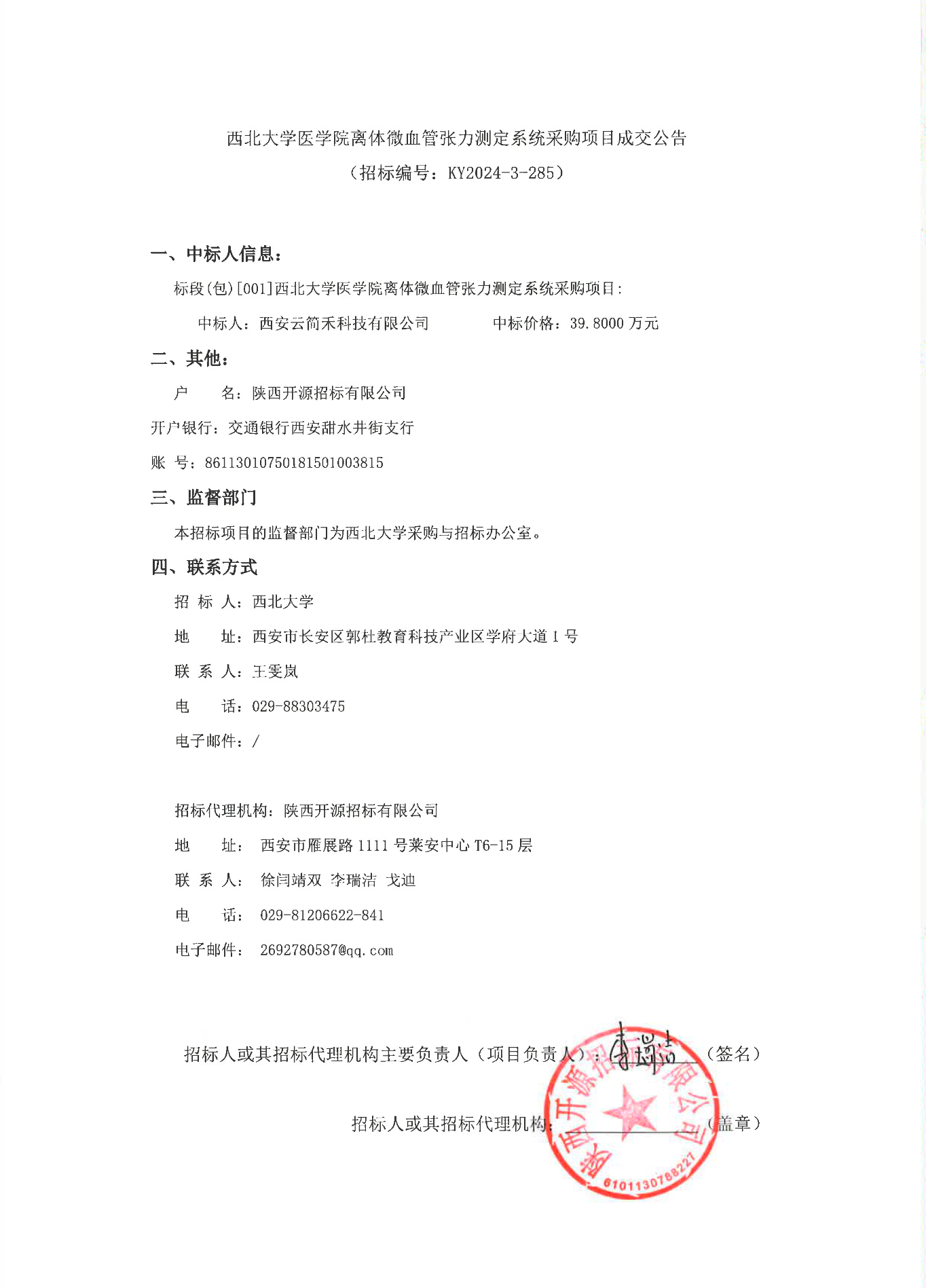 8868体育登录医学院离体微血管张力测定系统采购项目成交公告 作者:采购与招标办公室 编辑: 时间:2024-12-06 原公告链接:http://bulletin.sntba.com/resultBulletin/2024-12-06/1994392.html
