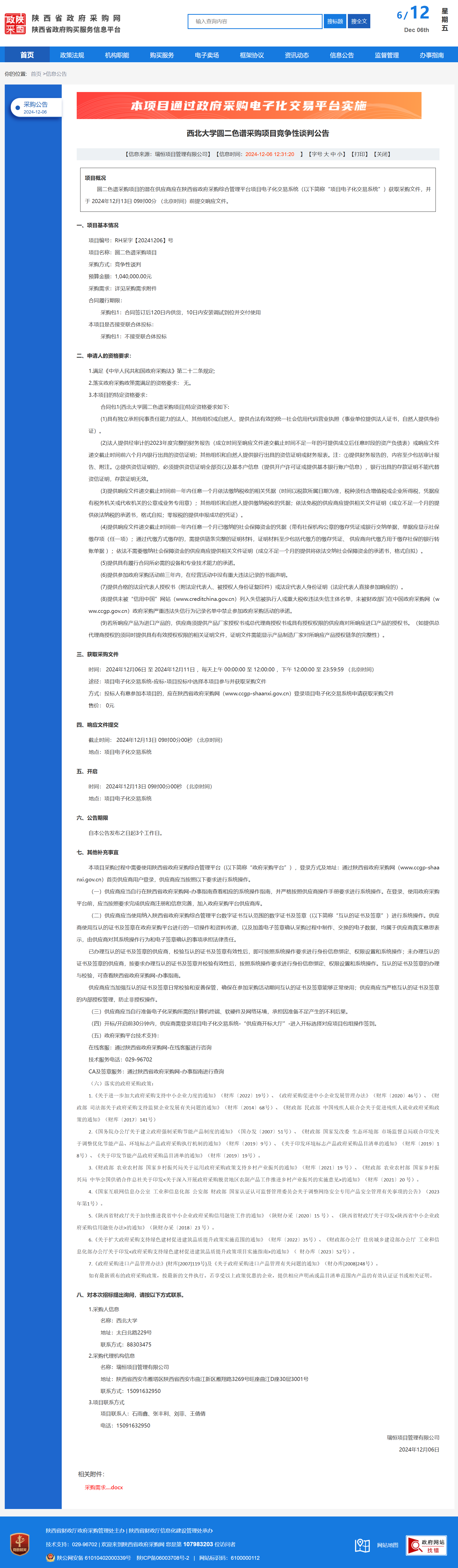 8868体育登录圆二色谱采购项目竞争性谈判公告 作者:采购与招标办公室 编辑: 时间:2024-12-06 原公告链接:https://www.ccgp-shaanxi.gov.cn/freecms/site/shaanxi/ggxx/info/2024/8a69c44e9218572b01939a34451055bc.html?noticeType=001013¬iceId=8d0f9f1f-b38c-11ef-8063-08c0eb20c666
