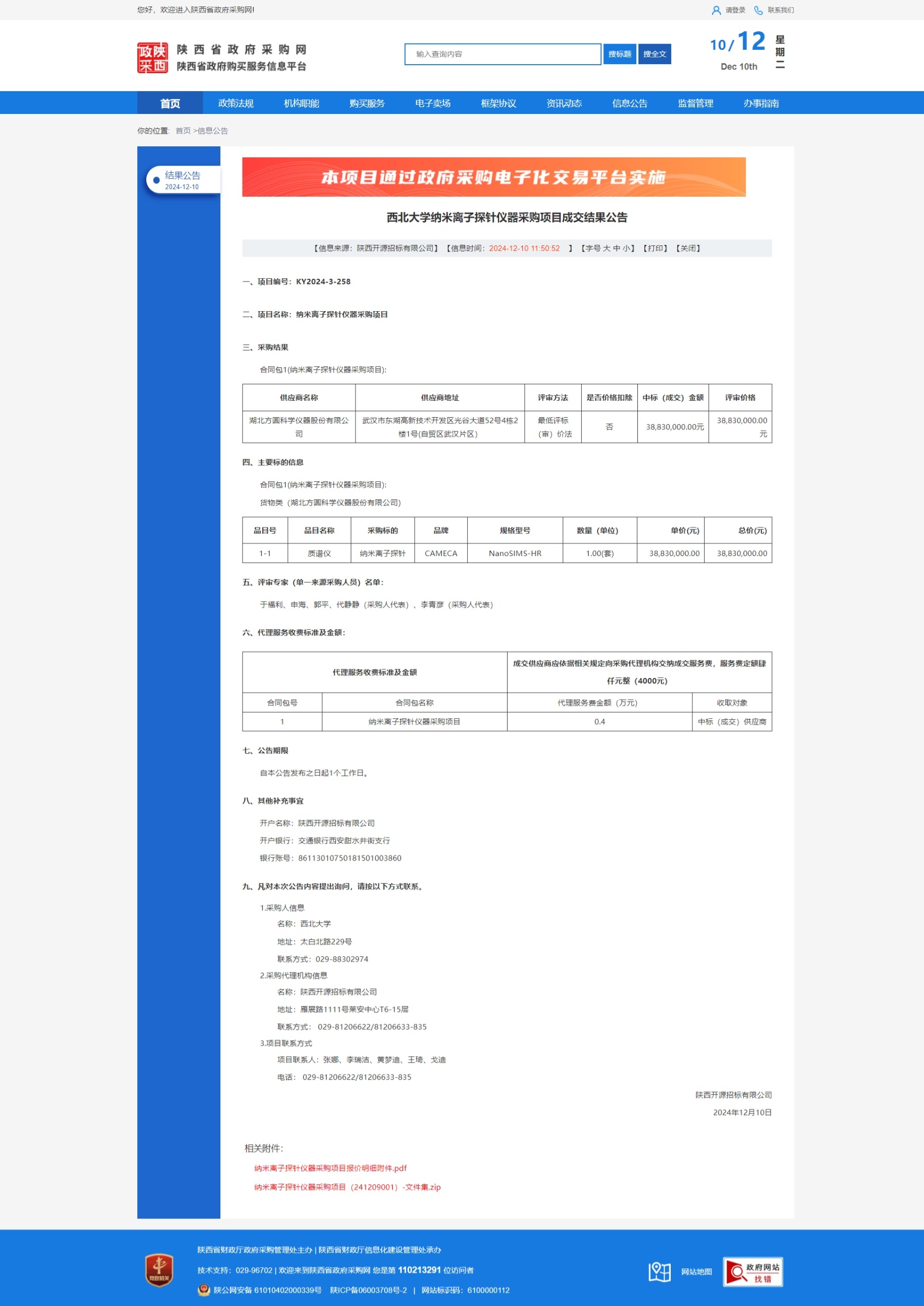 8868体育登录纳米离子探针仪器采购项目成交结果公告 作者: 编辑:薛利娟 时间:2024-12-10 原公告链接:https://www.ccgp-shaanxi.gov.cn/freecms/site/shaanxi/ggxx/info/2024/8a69c5a59218576d0193aea3717402eb.html?noticeType=001025¬iceId=917c05e9-b6ab-11ef-8063-08c0eb20c666