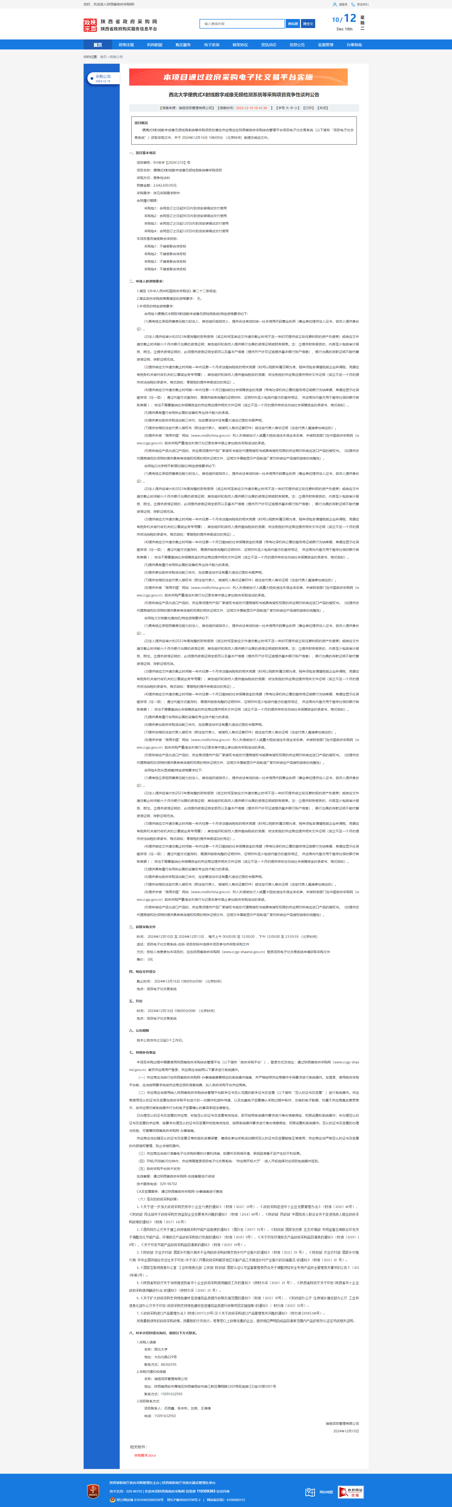 8868体育登录便携式X射线数字成像无损检测系统等采购项目竞争性谈判公告
