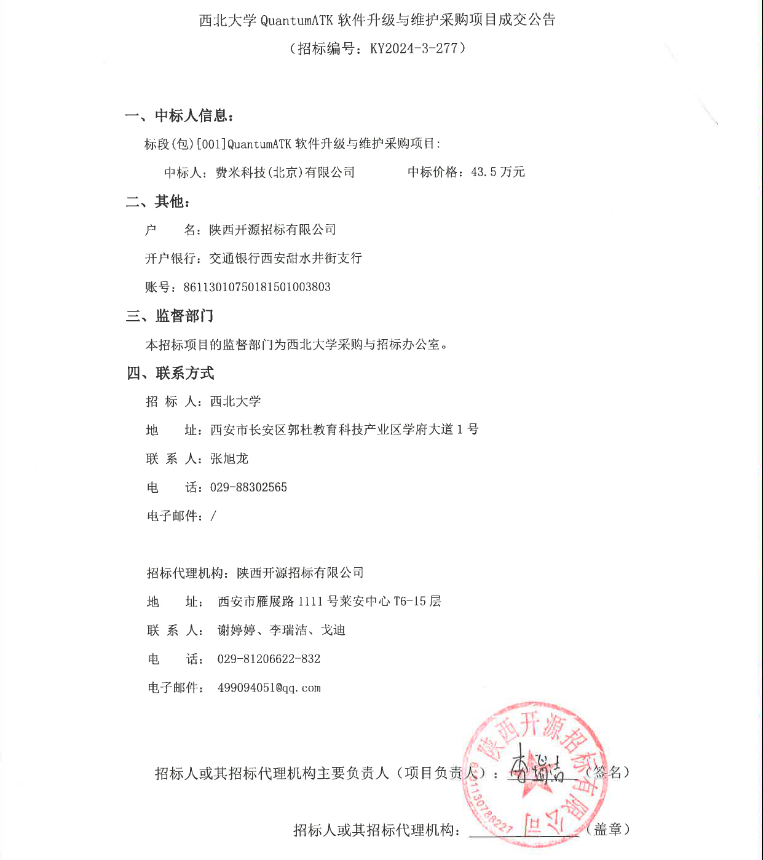 8868体育登录QuantumATK软件升级与维护采购项目成交公告