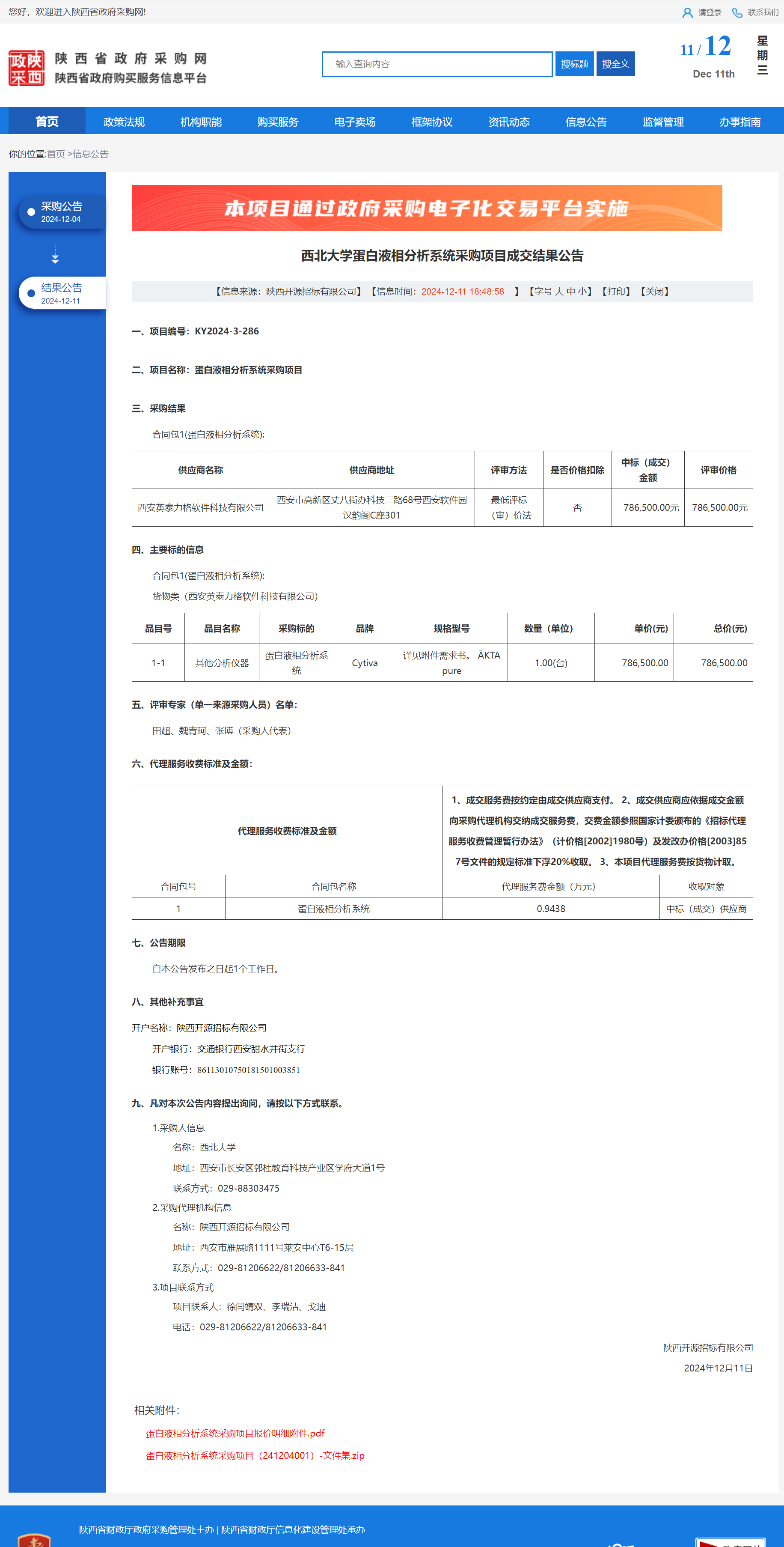 8868体育登录蛋白液相分析系统采购项目成交结果公告 作者:采购与招标办公室 编辑: 时间:2024-12-11 原公告链接:https://www.ccgp-shaanxi.gov.cn/freecms/site/shaanxi/ggxx/info/2024/8a69c5a59218576d0193b5311e001b2d.html?noticeType=001023¬iceId=24caaa3b-b7af-11ef-8063-08c0eb20c666