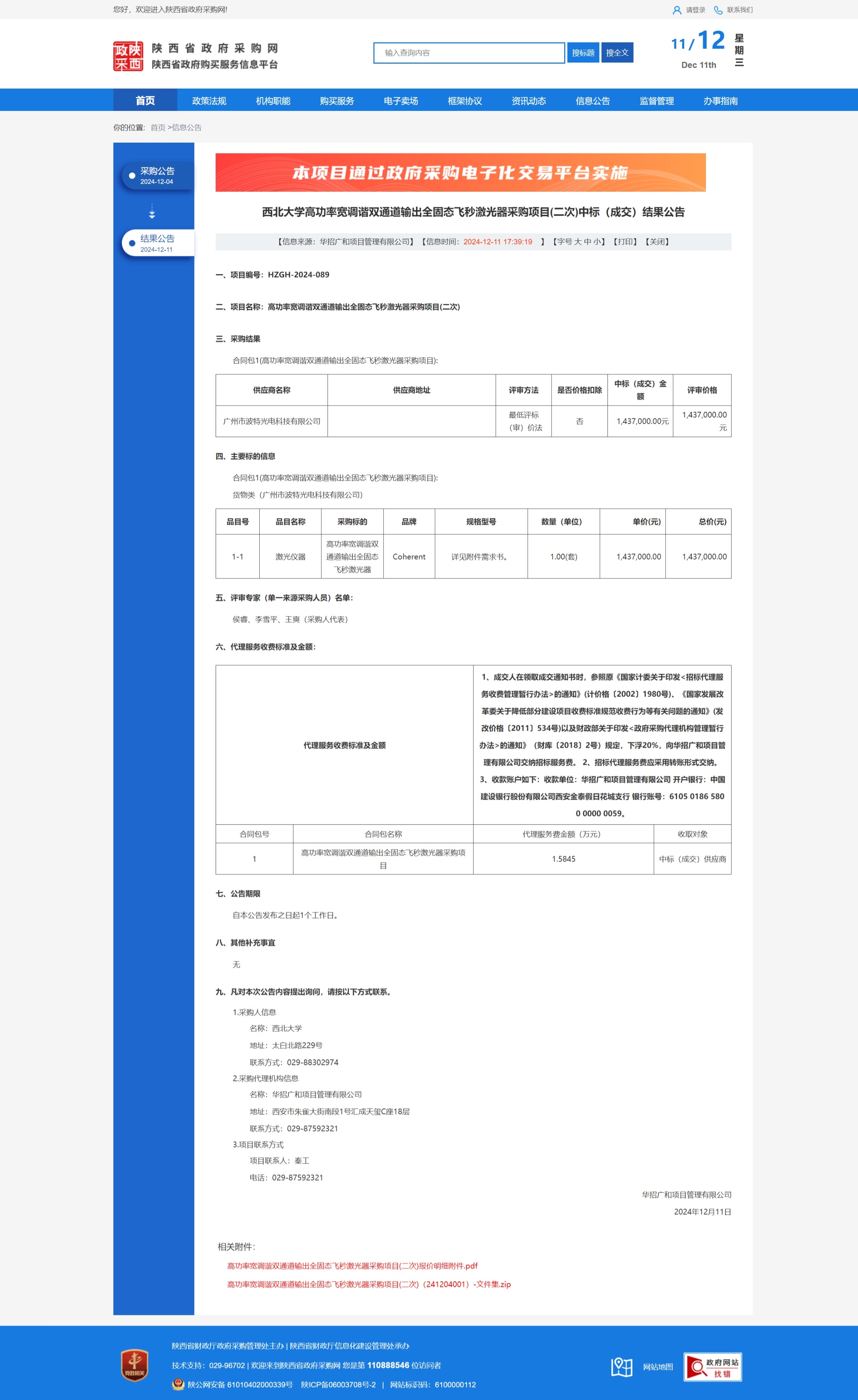 8868体育登录高功率宽调谐双通道输出全固态飞秒激光器采购项目(二次)中标(成交)结果公告 作者: 编辑:薛利娟 时间:2024-12-11 原公告链接:https://www.ccgp-shaanxi.gov.cn/freecms/site/shaanxi/ggxx/info/2024/8a69c44e9218572b0193b510703434f1.html?noticeType=001023¬iceId=6a16952d-b7a5-11ef-8063-08c0eb20c666