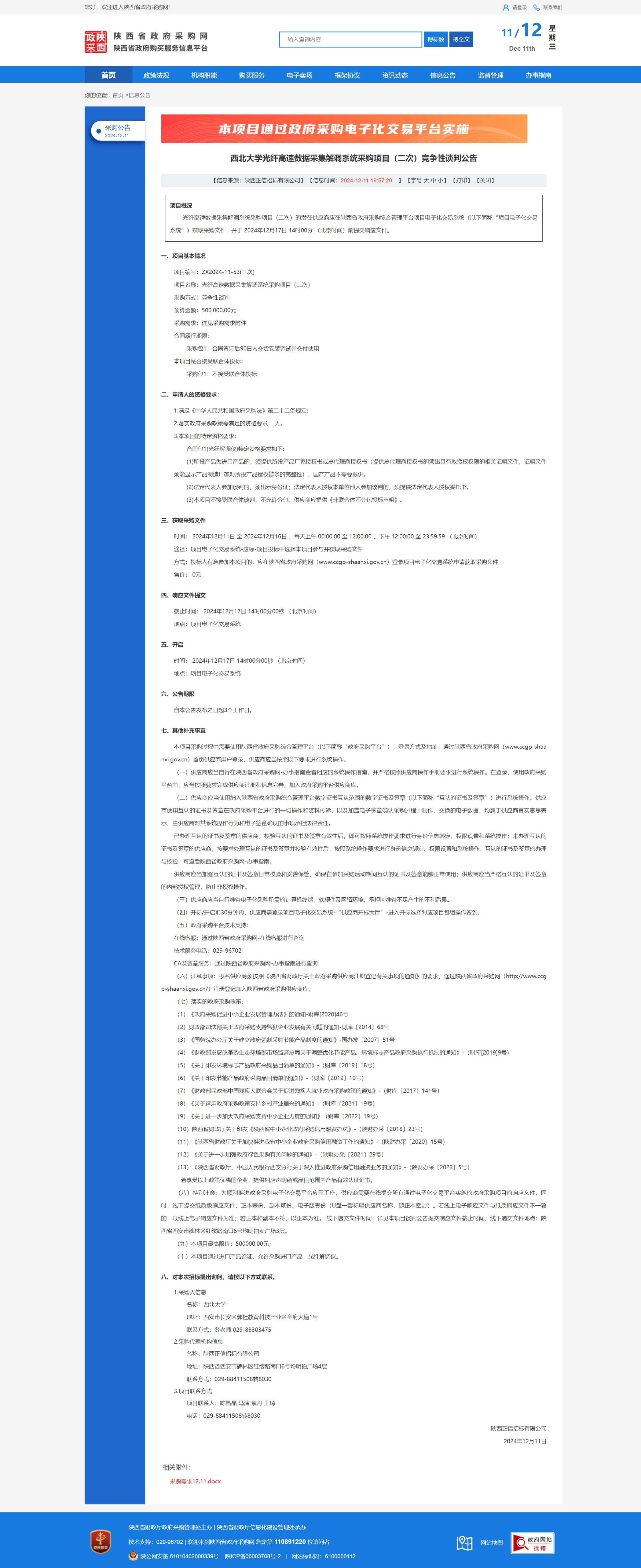 8868体育登录光纤高速数据采集解调系统采购项目(二次)竞争性谈判公告 作者: 编辑:薛利娟 时间:2024-12-11 原公告链接:https://www.ccgp-shaanxi.gov.cn/freecms/site/shaanxi/ggxx/info/2024/8a69c251921857370193b57e9b8200ae.html?noticeType=001013¬iceId=b1b907cc-b7b8-11ef-8063-08c0eb20c666