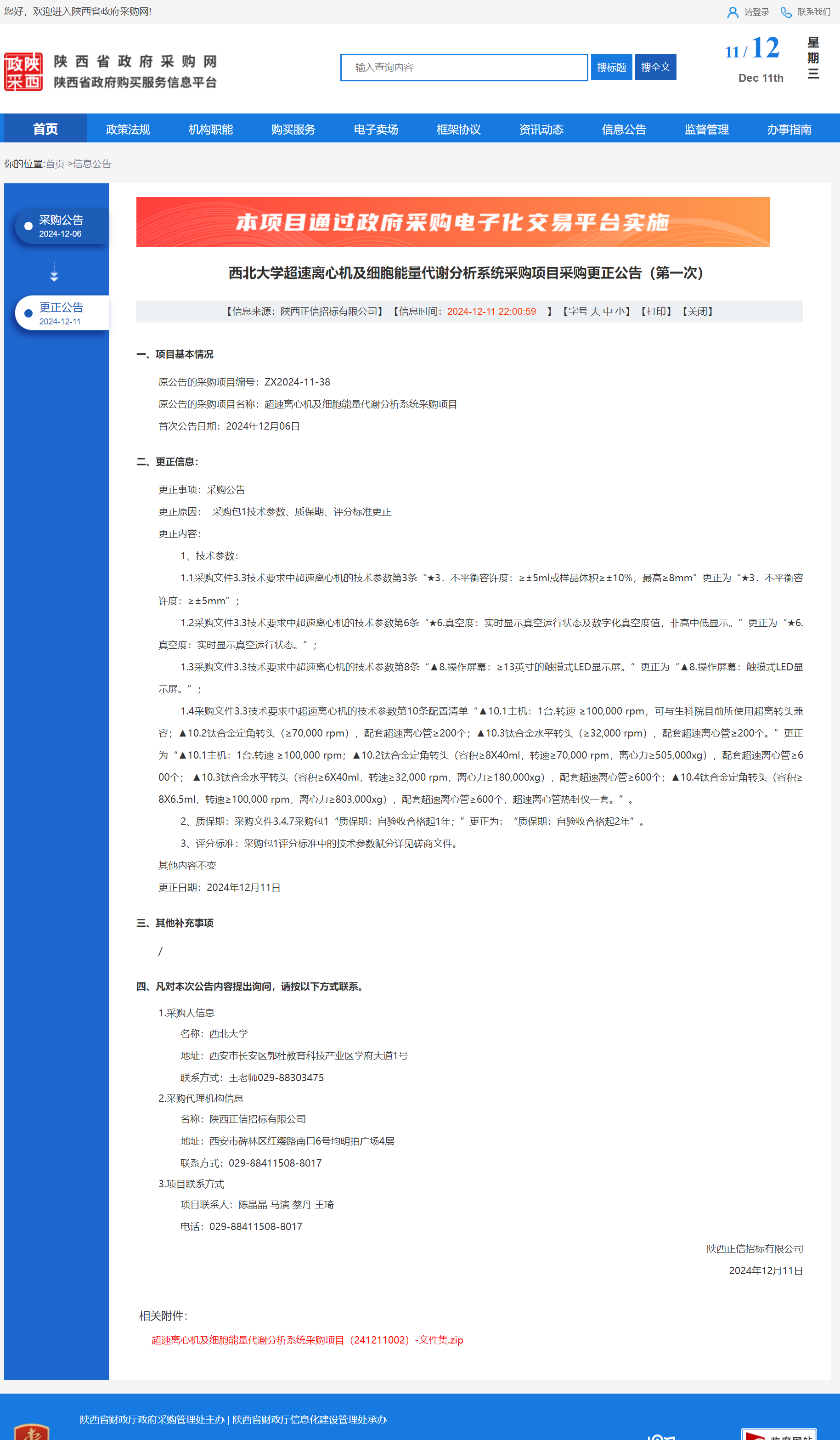 8868体育登录超速离心机及细胞能量代谢分析系统采购项目采购更正公告(第一次) 作者:采购与招标办公室 编辑: 时间:2024-12-11 原公告链接:https://www.ccgp-shaanxi.gov.cn/freecms/site/shaanxi/ggxx/info/2024/8a69c95d921859f00193b5ef779b0184.html?noticeType=001031¬iceId=f816817e-b7c9-11ef-8063-08c0eb20c666