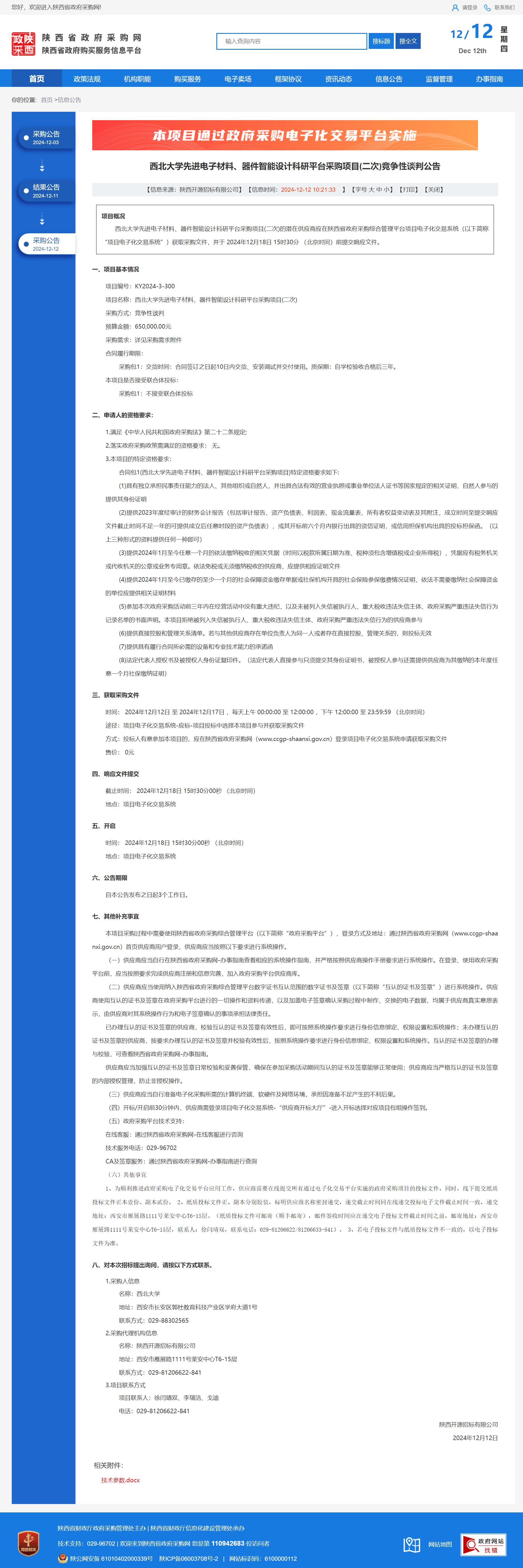 8868体育登录先进电子材料、器件智能设计科研平台采购项目(二次)竞争性谈判公告