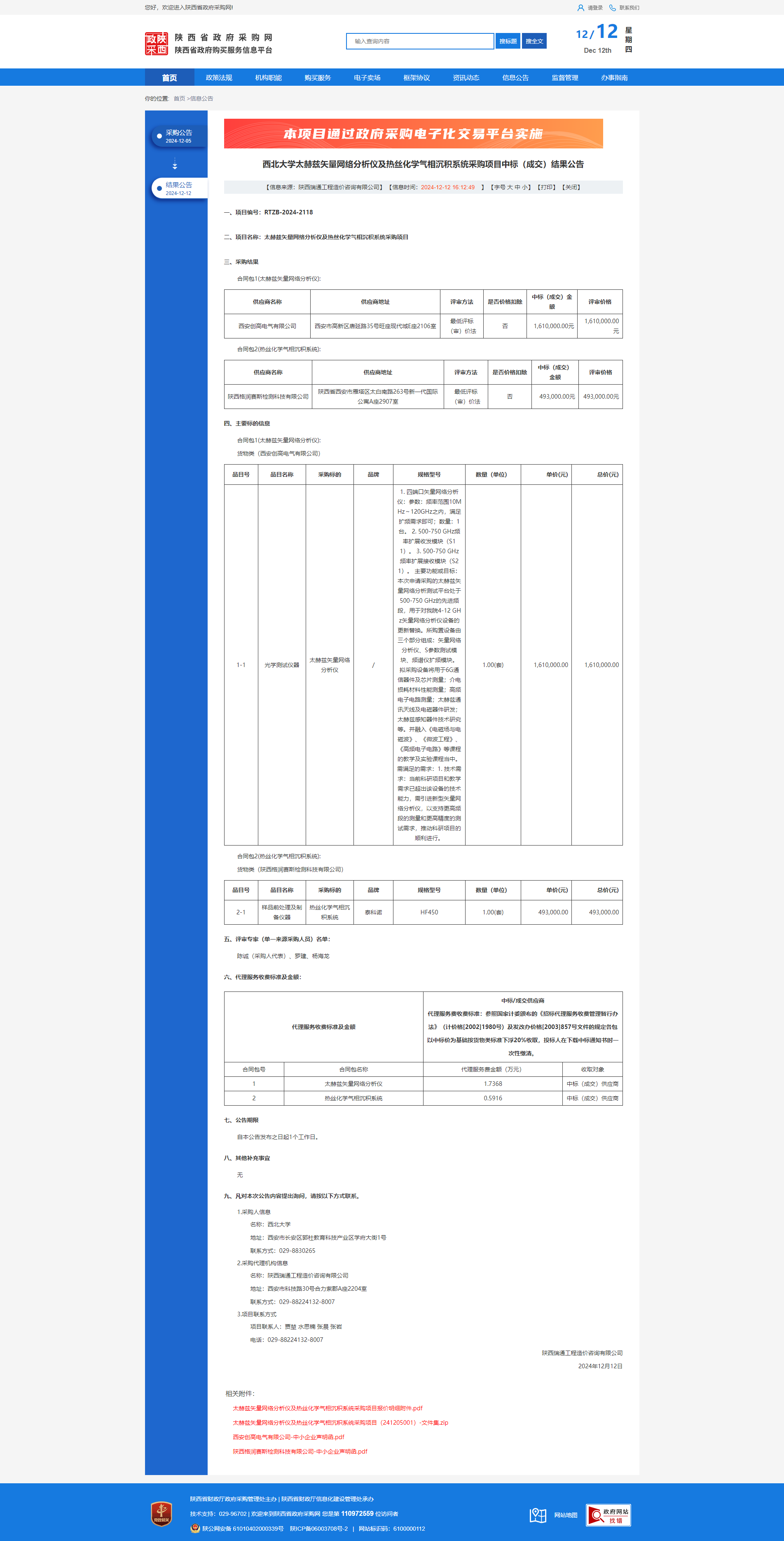 8868体育登录太赫兹矢量网络分析仪及热丝化学气相沉积系统采购项目中标(成交)结果公告