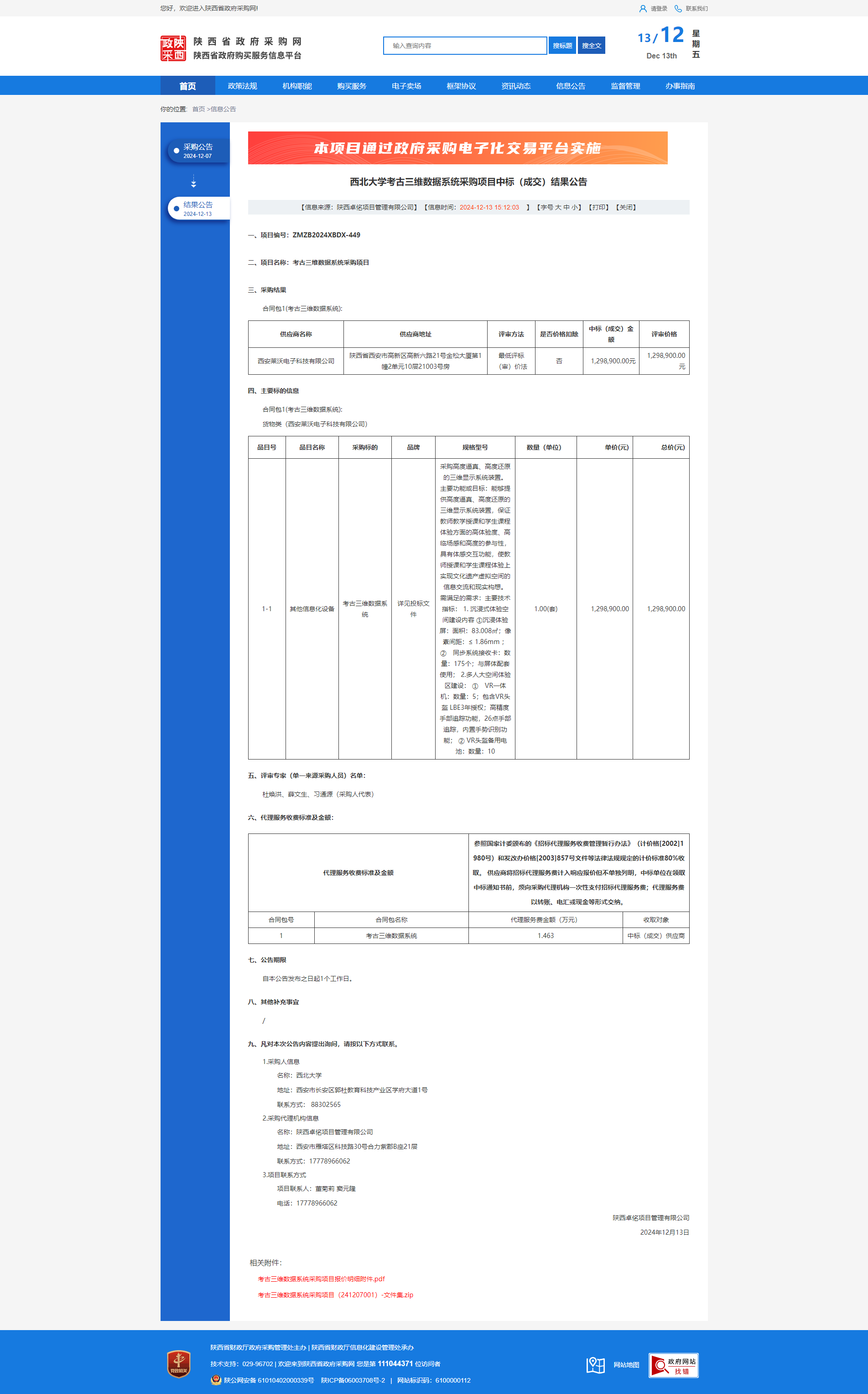 8868体育登录考古三维数据系统采购项目中标(成交)结果公告