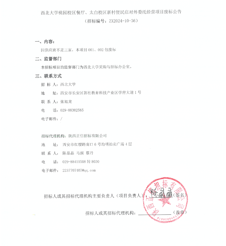 8868体育登录桃园校区餐厅、太白校区新村便民店对外委托经营项目废标公告