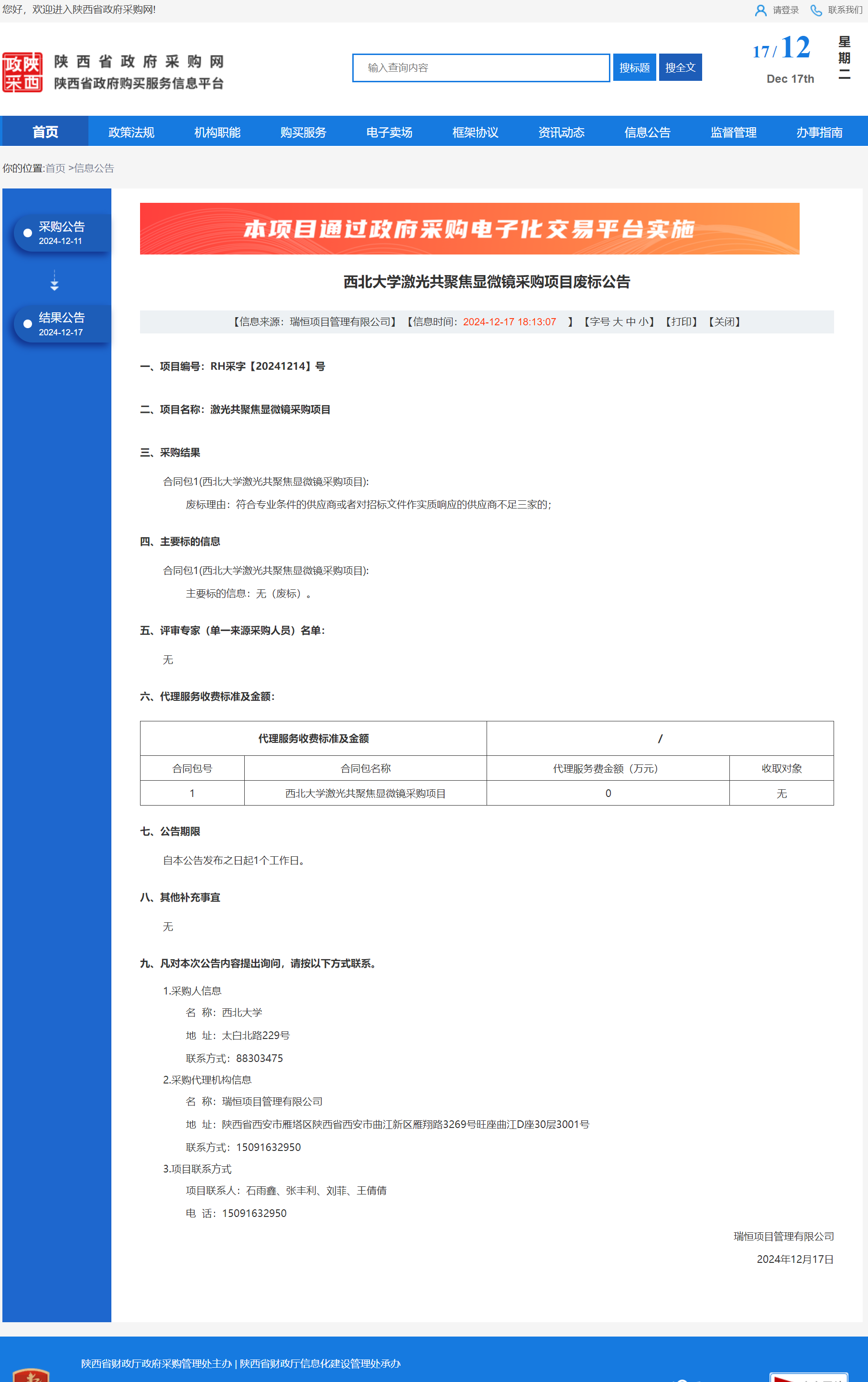 8868体育登录激光共聚焦显微镜采购项目废标公告 作者:采购与招标办公室 编辑: 时间:2024-12-17 原公告链接:https://www.ccgp-shaanxi.gov.cn/freecms/site/shaanxi/ggxx/info/2024/8a69c5a59218576d0193d411ecee4f38.html