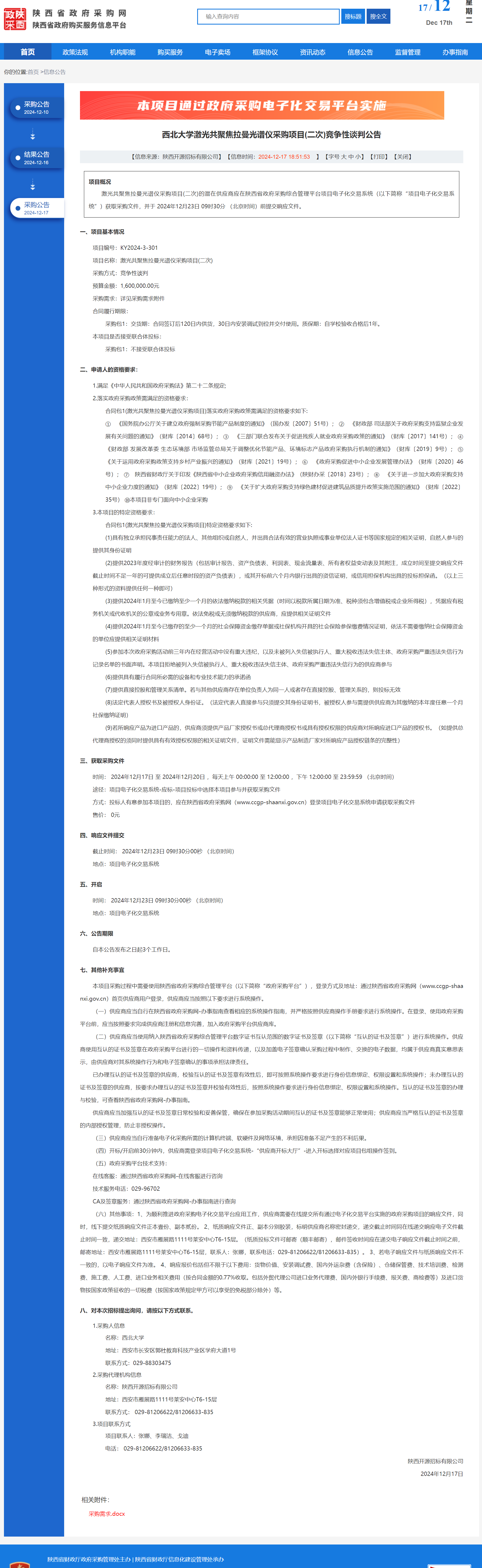8868体育登录激光共聚焦拉曼光谱仪采购项目(二次)竞争性谈判公告 作者:采购与招标办公室 编辑: 时间:2024-12-17 原公告链接:https://www.ccgp-shaanxi.gov.cn/freecms/site/shaanxi/ggxx/info/2024/8a69c44e9218572b0193d434f6c730a9.html?noticeType=001013¬iceId=8ed4237e-bc66-11ef-8063-08c0eb20c666