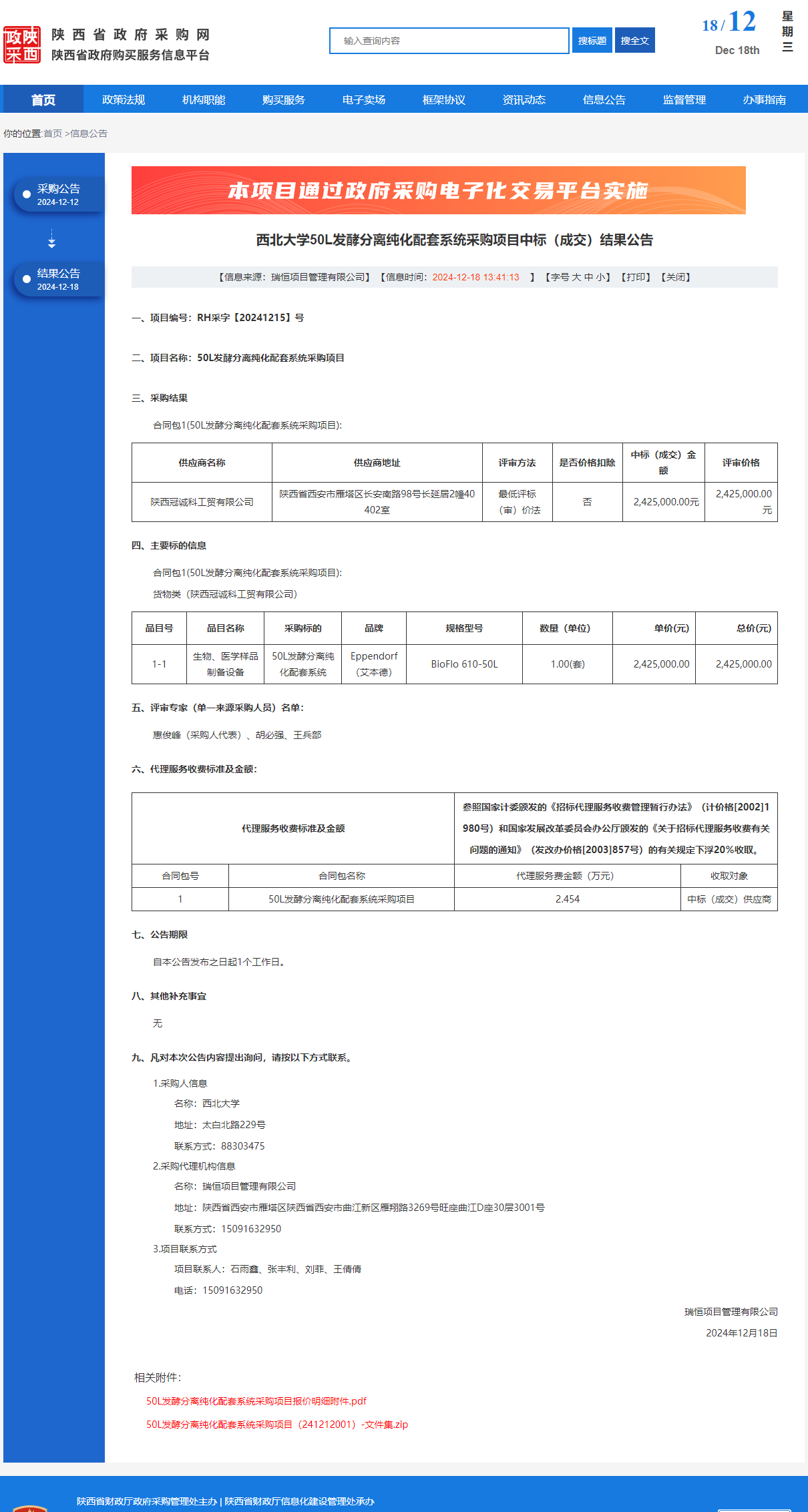 8868体育登录50L发酵分离纯化配套系统采购项目中标(成交)结果公告 作者:采购与招标办公室 编辑: 时间:2024-12-18 原公告链接:https://www.ccgp-shaanxi.gov.cn/freecms/site/shaanxi/ggxx/info/2024/8a69c5a59218576d0193d83e10003654.html