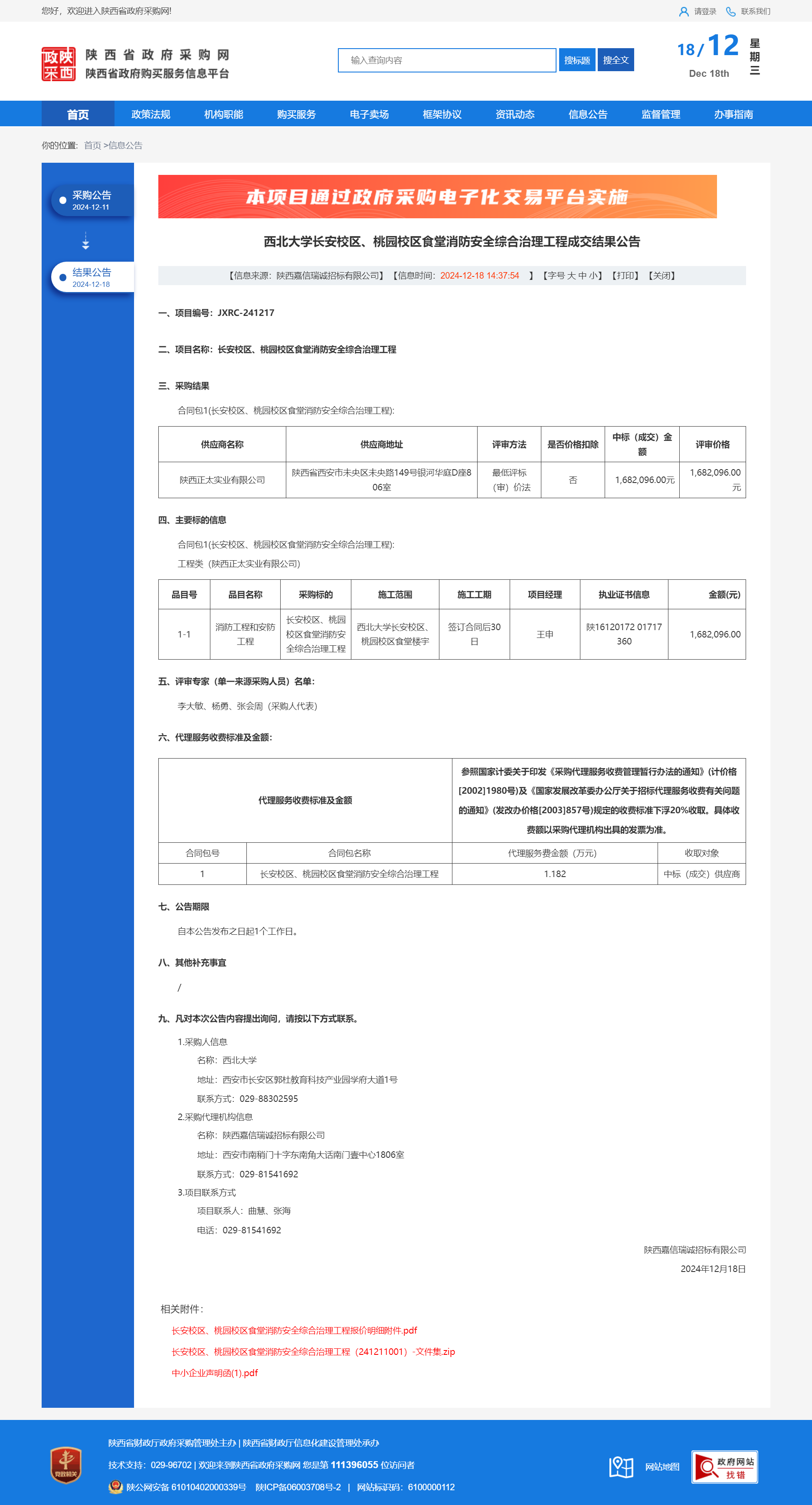 8868体育登录长安校区、桃园校区食堂消防安全综合治理工程成交结果公告