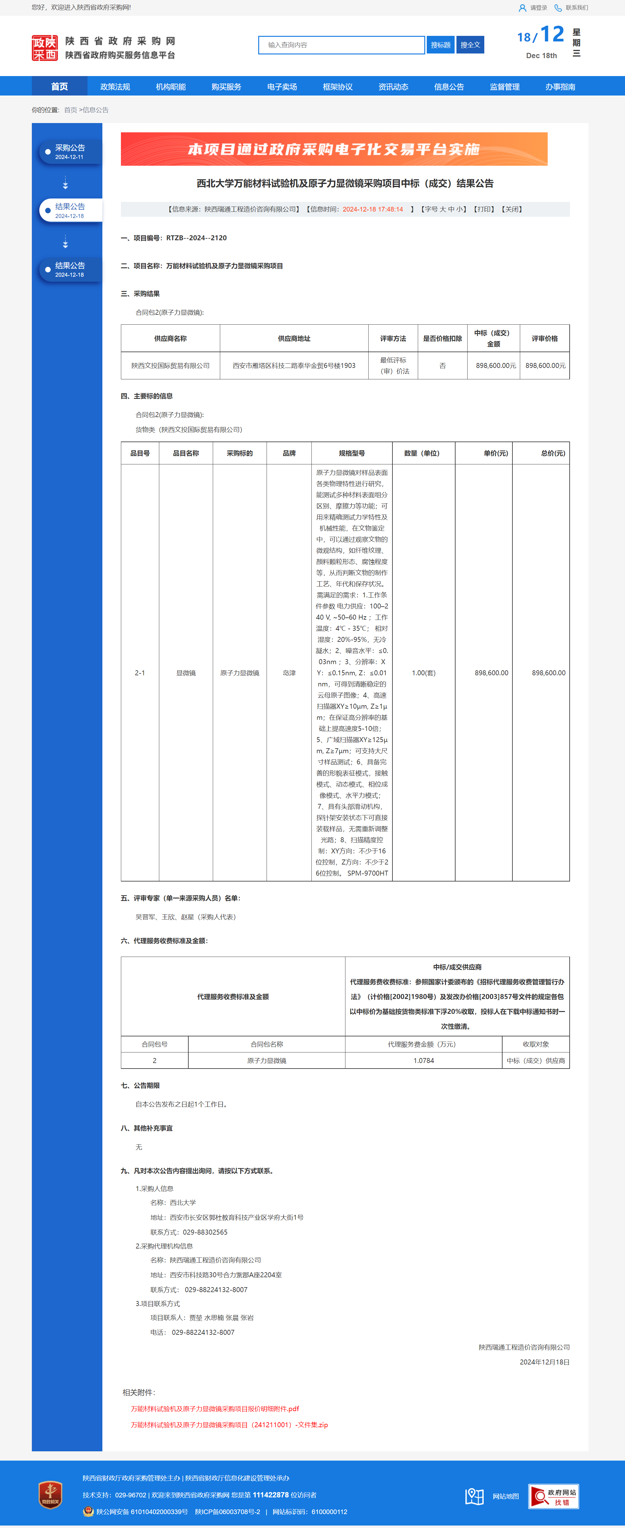 8868体育登录万能材料试验机及原子力显微镜采购项目结果公告