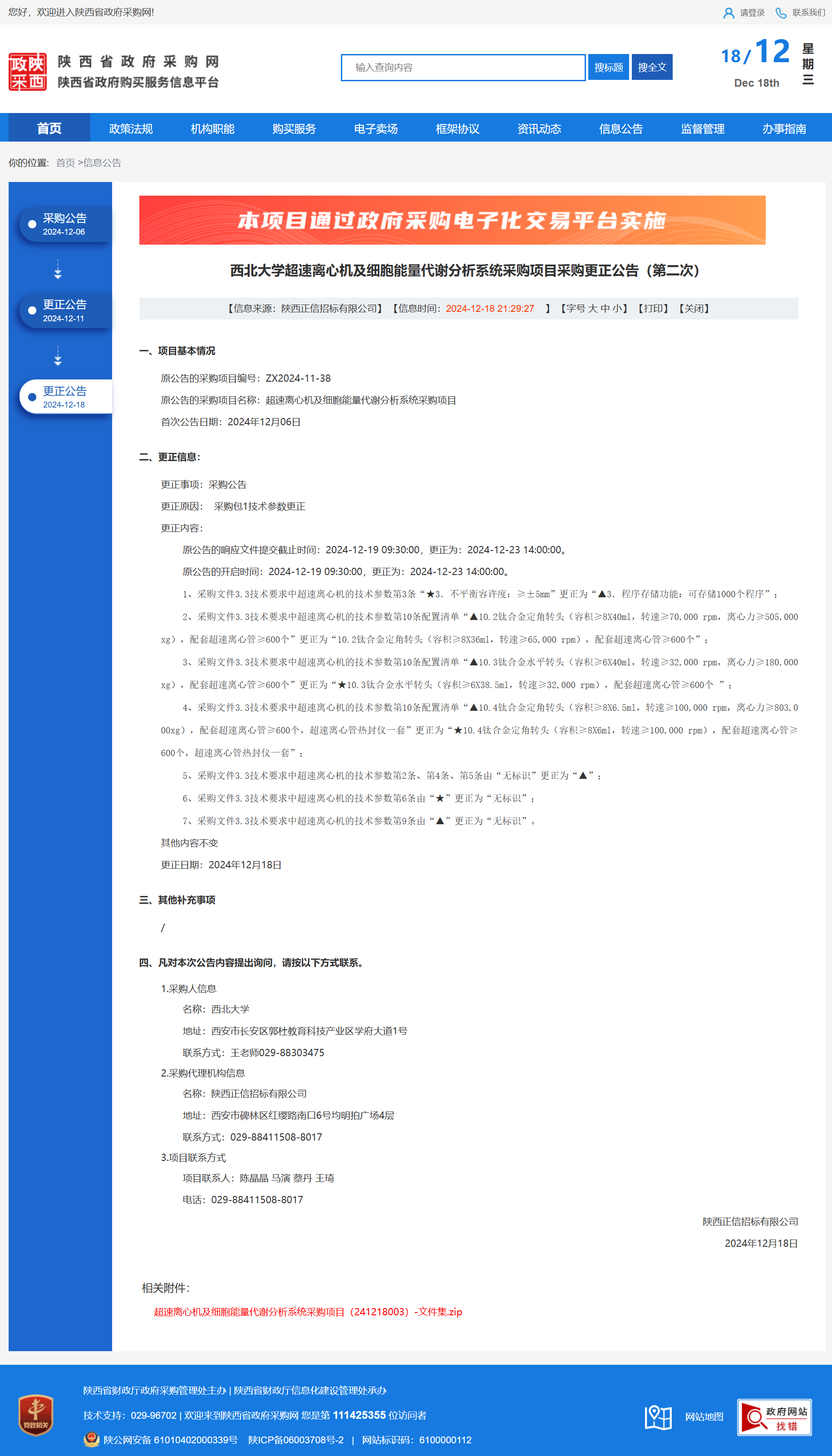 8868体育登录超速离心机及细胞能量代谢分析系统采购项目采购更正公告(第二次) 作者:采购与招标办公室 编辑: 时间:2024-12-18 原公告链接:https://www.ccgp-shaanxi.gov.cn/freecms/site/shaanxi/ggxx/info/2024/8a69c5a59218576d01939bb6350f3f92.html?noticeType=001016¬iceId=5be8bcca-b3ca-11ef-8063-08c0eb20c666